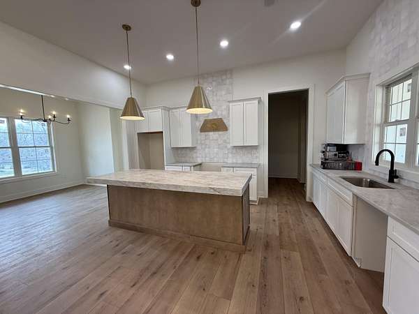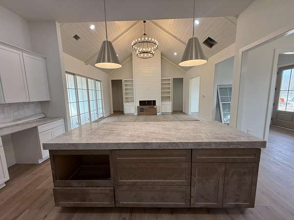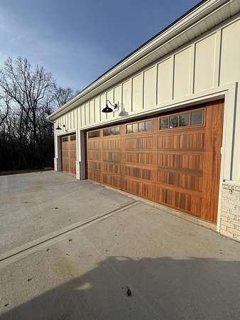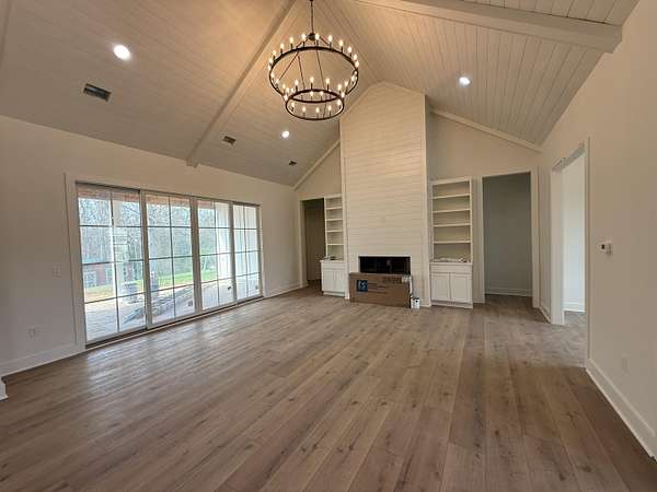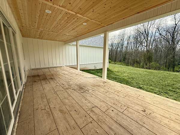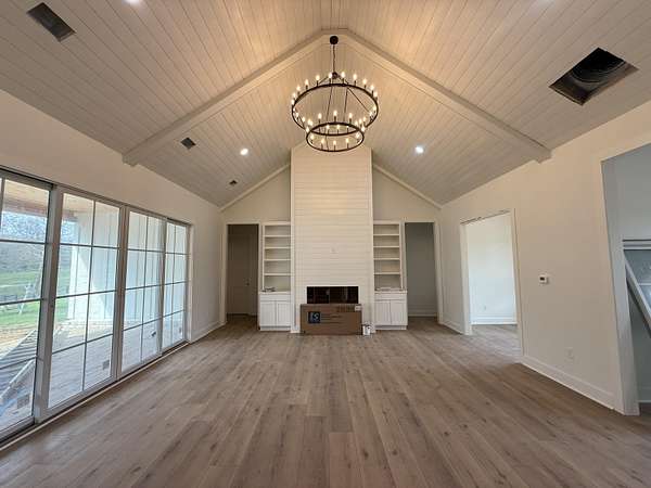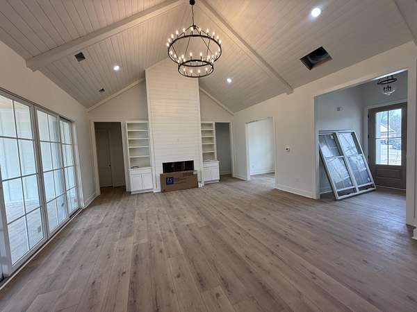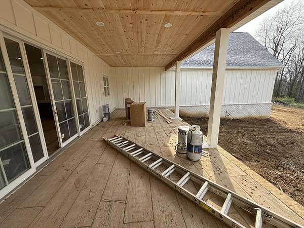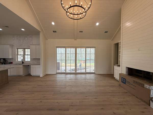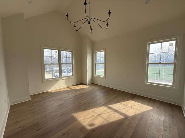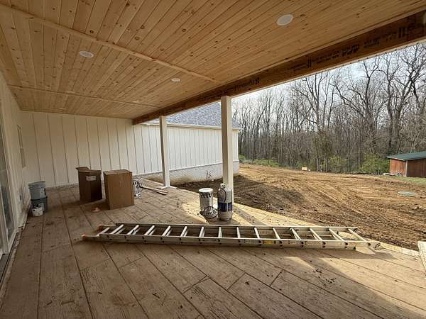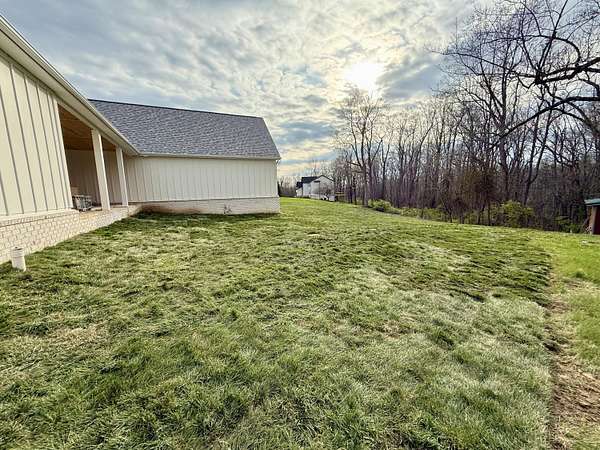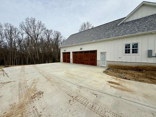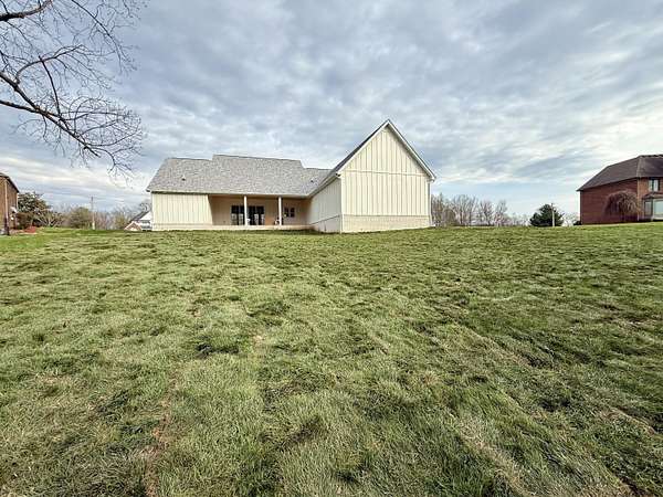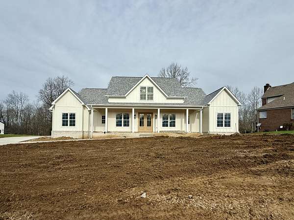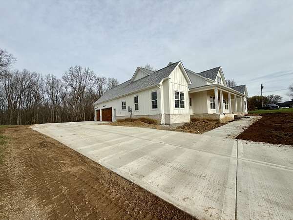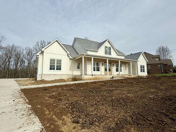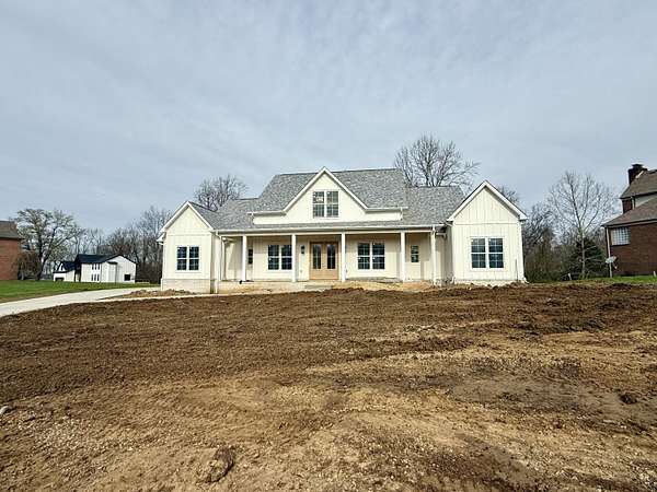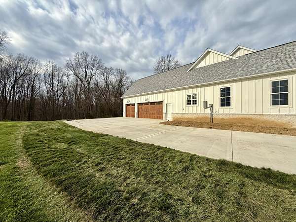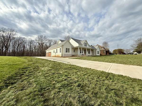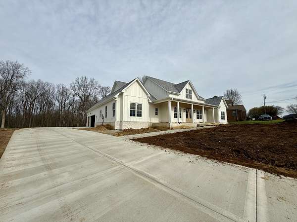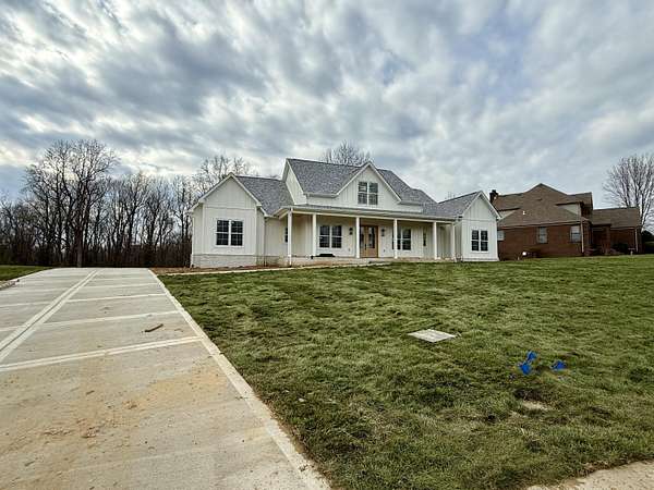 Positioned on a beautiful 1.55-acre lot in Northern Madison County, this nearly completed modern farmhouse offers the perfect blend of privacy, design, and functionality (just 30 days from completion). Backing to a wooded tree line, on a dead end street, the setting delivers a peaceful, secluded feel while still being minutes from Richmond conveniences. This thoughtfully designed home features nearly 2,400 sq ft of living space with a highly desirable split-bedroom layout, offering 4 bedrooms, 3.5 baths, and exceptional everyday livability with maximum privacy. From the moment you arrive, you'll be drawn in by the striking curb appeal that is highlighted by classic white board-and-batten Hardie board siding, multiple gables, and a large welcoming covered front porch that creates a clean, balanced farmhouse aesthetic. Inside, the home opens to a stunning vaulted great room with a shiplap ceiling, custom wooden beams, a large chandelier, fireplace, and built-ins, flowing seamlessly into a picture perfect and spacious kitchen with custom soft close cabinetry as well as high end countertops, designed for both entertaining and daily life. The kitchen features a large island with seating, a walk-in pantry, and easy access to a rear covered porch that is perfect for indoor-outdoor living. The primary suite is privately positioned and offers a true retreat with vaulted ceilings, a luxurious en-suite bath, a generous walk-in tiled shower, double vanities, soaking tub, and large walk in closet. On the opposite side of the home, three additional bedrooms provide flexibility, including a Jack-and-Jill bath and a private guest suite setup.Additional highlights include a dedicated dining space or home office, a functional mudroom, main-level laundry, and a spacious side-entry 3-car garage. Enjoy evenings overlooking the private wooded backdrop from the expansive rear porch, creating the ideal setting for relaxing or entertaining. A rare opportunity to own a brand-new construction home on acreage with high-end design, privacy, and convenience will be ready very soon. Schedule your showing now and secure it before completion.