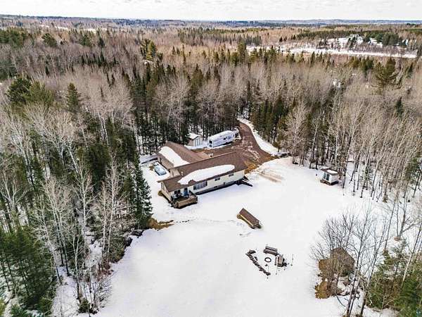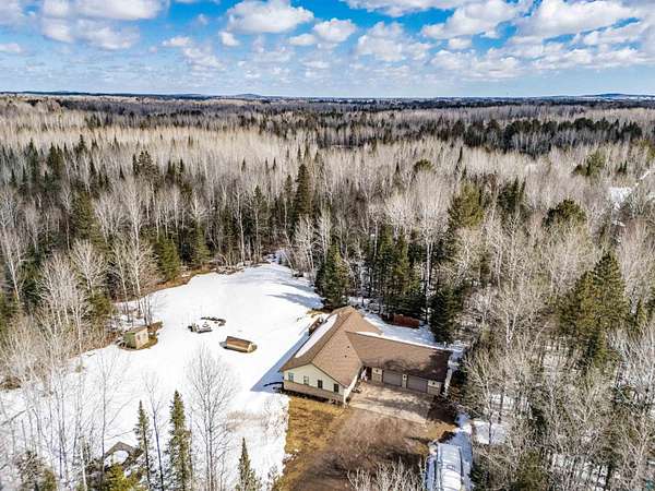 Nestled among towering pines on five private acres, this beautiful four-bedroom, three-bath home offers the perfect blend of comfort and serenity. The open-concept design creates an inviting flow between the spacious living area, modern kitchen, and dining space—ideal for gatherings and everyday living. The primary suite provides a relaxing retreat with an en suite bath and generous walk-in closet. A bright sunroom doubles as an inspiring home office, while a lower-level game room adds extra space for recreation and entertaining. Enjoy the luxury of a private sauna, perfect for unwinding after a long day. Step outside to explore nearby trails that wind through the woods and lead directly to the scenic Midway River. Whether you’re seeking peaceful seclusion, room to roam, or a connection to nature, this property offers a rare opportunity to live the Northland lifestyle in comfort and style. Offer deadline: 3/30/26 at 3pm.