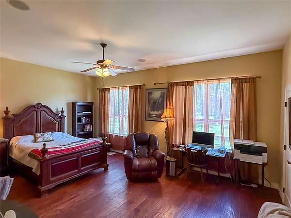 Absolutely Stunning Executive Home on 5 Acres! The Impeccable Craftsmanship & attention to detail is evident from the moment you pull up to the property! Stone Entry with Electric Gate & Concrete Paved Driveway coming in. The home offers Over sized Bedrooms, Arched Doorways & Windows throughout with custom ceiling designs, & a Beautiful Mahogany Front Door. 2 Split Master Suites, 2 Living Rooms, a Formal Dining Room, a Breakfast Dining Room with Crouch Ceiling and Built in China Cabinet. The entire Upstairs is a Private Executive Office with its own Full Bathroom & Half Kitchen also a Large Storage Closet! First Primary Room offers Bay Windows with its own entry door. Hollywood style Bathroom with Barrel Ceiling, Jetted Tub, Separate Shower, Sinks, & Vanities. Extra Built in Storage in Cabinets. Large walk in closet with Built ins including dressers. The Kitchen offers a Butcher Block Island, Granite Countertops, Built in Microwave, Gas Stove, Double Oven, & a Large Pantry. The Laundry Room is Perfect with Sink, Counter tops, Drip Dry Hanging Bar, Cabinets & the Washer and Dryer stay! Outside is a Large Covered Back Patio perfect for morning coffee or relaxing in the evening. A Beautiful Natural Stone Swimming Pool with a Hot Tub Spa & Waterfalls, a 20 X 20 Outdoor Kitchen with Hardwired Grill and Smoker, a sink, 20 foot tall Pergola, & Gas Fire Pit! Also, the Outside Tables and Seating will stay. Smart Home Features throughout for lighting and sound. Not only is there a Huge Finished Out 3 Car Garage; there is also a 30 X 40 Metal Workshop with Electric, Plenty of Shelving, & Concrete Floor. The Entire Property is Fenced and Landscaped, Giving it a Peaceful and Private atmosphere to relax and enjoy the local wildlife. Horses & Animals are permitted too! This is truly a Must See to be able to appreciate all the extras and care with details that have been put into this Gem tucked away in a cul de sac in Quail Springs Ranch which includes a Clubhouse and Lake!