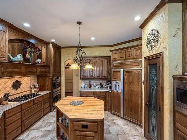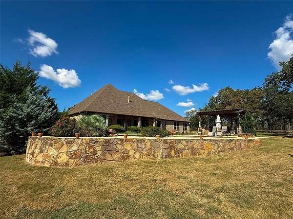 Executive Home on 5 Acres in Northwest Weatherford - Peaster area! Owners have Maintained the property Beautifully! The Craftsmanship & attention to detail is evident from the moment you pull up to the property! Stone Entry with Electric Gate & Concrete Paved Driveway. Entire Property is Fenced & Landscaped. Outback is a Large Covered Back Patio overlooking a Backyard Oasis that includes; A mesmerizing Natural Stone Swimming Pool with a Hot Tub Spa & Waterfalls, a 20 X 20 Outdoor Kitchen with Hard Wired Grill & Smoker, a sink, 20 foot tall Pergola, & a Gas Fire Pit! The Peaceful & Private Atmosphere is Priceless! As a plus, the Outside Tables and Seating will stay too! There's Smart Home Features throughout for lighting & sound. Tucked away towards the back of the property is the Perfect Man Cave. A Separate 30 X 40 Workshop with Electric, Shelving, & Concrete Floor. If that's not enough, there is a 3 Car attached Garage too! The home offers Over sized Bedrooms, Arched Doorways & Windows with custom ceiling designs, & a Beautiful Mahogany Front Door! 2 SPLIT MASTER SUITES, 2 Living Rooms, a Formal Dining Room, a Breakfast Dining Room with Crouch Ceiling & Built in China Cabinet. The ENTIRE Upstairs is a PRIVATE EXECUTIVE OFFICE with its own Full Bathroom & Half Kitchen also a Large Storage Closet! But of course could be used as a Bedroom or Game Room too. First Primary Room offers Bay Windows with its own entry door. Hollywood style Bathroom with Barrel Ceiling, Jetted Tub, Separate Shower, Sinks, & Vanities. Large walk in closet with Built ins including dressers. The Kitchen offers a Butcher Block Island, Granite Countertops, Built in Microwave, Gas Stove, Double Oven, & a Large Pantry. The Laundry Room is Perfect with Sink, Counter tops, Drip Dry Hanging Bar, Cabinets & the Washer and Dryer stay! This property Truly has it ALL! Horses are permitted and the Natural Wildlife is Abundant. This is a True Gem tucked away in a cul de sac in Quail Springs Ranch!