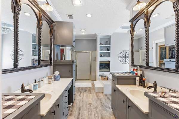 - Attic Storage, Cable TV, Ceiling Fans, Central Vacuum, Garage Door Opener, Garden Tub, Gas Logs, High Speed Internet, Horses Allowed, Jetted Tub, Multiple HVAC, Satellite Dish, Security Features, Speakers, Sprinkler System, Surround Sound, Underground Utilities, Window Blinds, Window Treatments