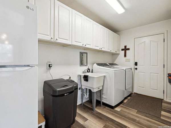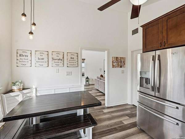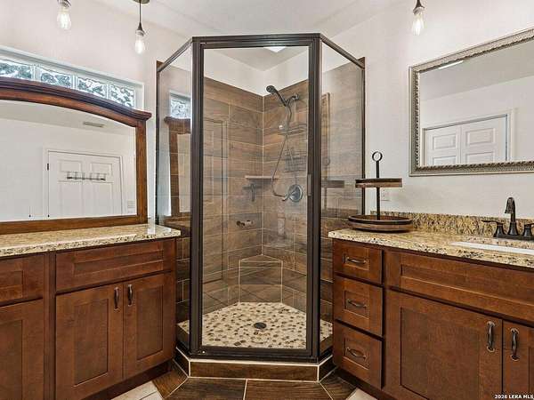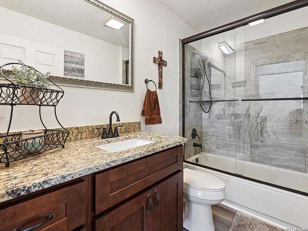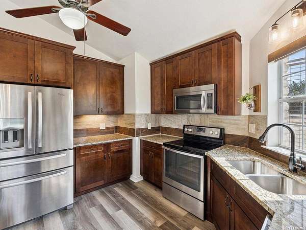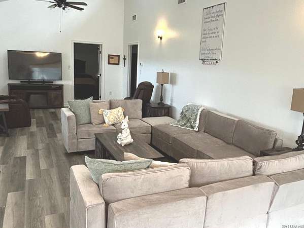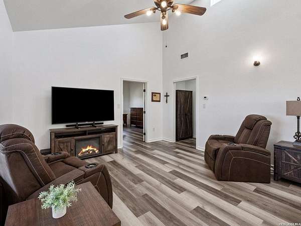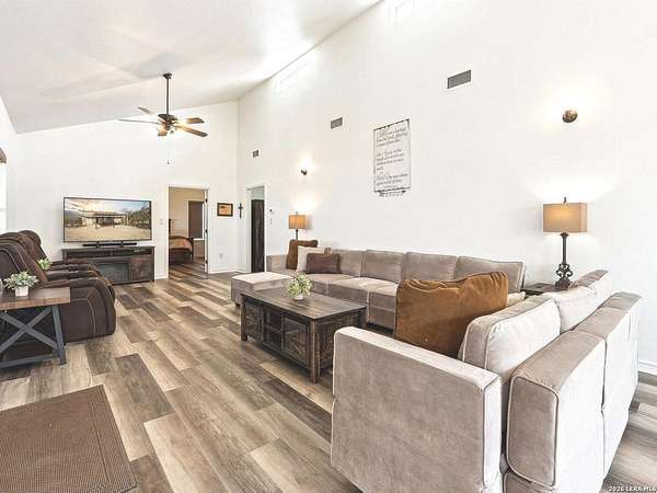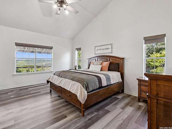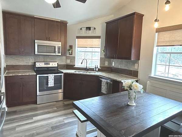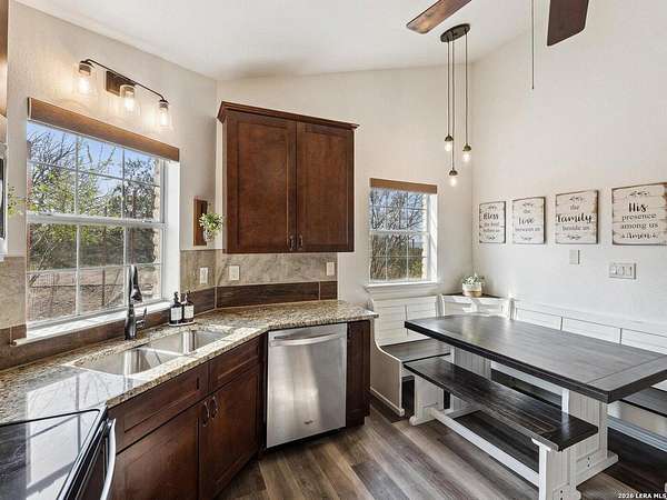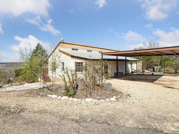 Enjoy watching the sunset every night from the large covered deck of this beautiful rock home located atop a hill with incredible westward-facing views of the Texas Hill Country. Along with impeccable views, this home had a NEW ROOF added back in May. Located off of a private road with an additional gated access to the lower property from the main road. This stunning remodeled home offers the perfect blend of modern living and rustic charm, just 1.5 miles west of the Kerrville Cross. Nestled on 10 wooded acres with fenced terraced garden/park area boasting dozens of flower varieties and abundant wildlife, you will forget you are less than 2 miles to the town of Kerrville with easy access to I-10 and Hwy 16. This gem offers high ceilings in living room and main bedroom with ceiling fans for added comfort, plus a Queen Murphy Bed in guest room, and solid wood doors throughout. All kitchen appliances plus washer/dryer, 2 refrigerator/freezers, & water softener are included. With a large utility room, granite countertops in the kitchen and bathrooms, durable laminate flooring throughout, and tile flooring in the main bathroom, maintenance is a breeze. Custom roller shades grace the windows, in-wall spray foam insulation provides energy efficiency. Another great feature is the extra 275 gallon water tank which provides peace of mind if ever needed. The excellent well water service is provided & monitored by the Saddle Mountain Water Cooperative, and owners recently installed a new water pump, and pump saver. Additional features that will convey are the ring doorbell cameras, portable fireplace console, furnishings if the buyer would like & decor. With its metal roof & single-story layout, this 1,529 sq ft, 2 bedroom, 2 bathroom residence exudes durability, accessibility, and convenience. Along with the new roof, an attached 2-car carport and newly built custom storage shed are located next to the home, with 40' shipping container on lower portion of property for all your storage needs. There is also a large graded area just waiting for your new barn, shop, or additional home(s) to be built! You'll fall in love with this property located within peaceful Kerrville Country Estates. In addition to living in this wonderful community, you will have access to the neighborhood's private lake and covered picnic area which offers plenty of room to entertain and explore. Whether you're watching wildlife, enjoying the views, or making use of the mature trees for shade, this home is perfect for country living close to town. Don't miss out on this one-of-a-kind property! Schedule a viewing and make this dream home yours.