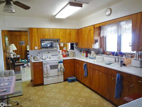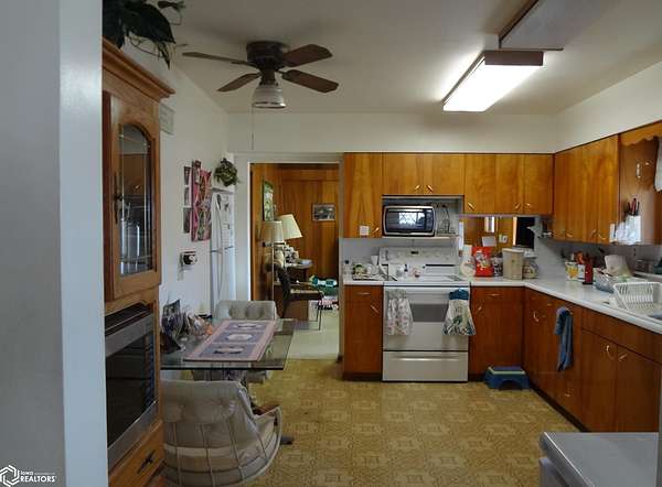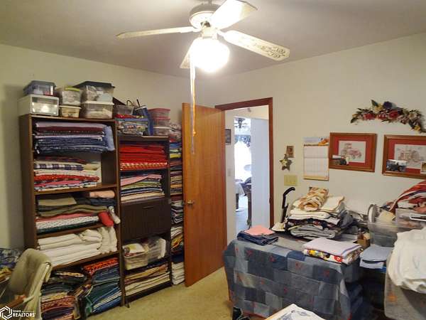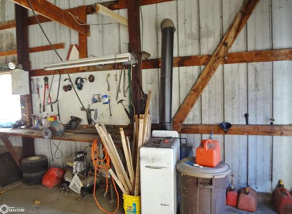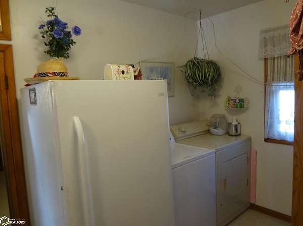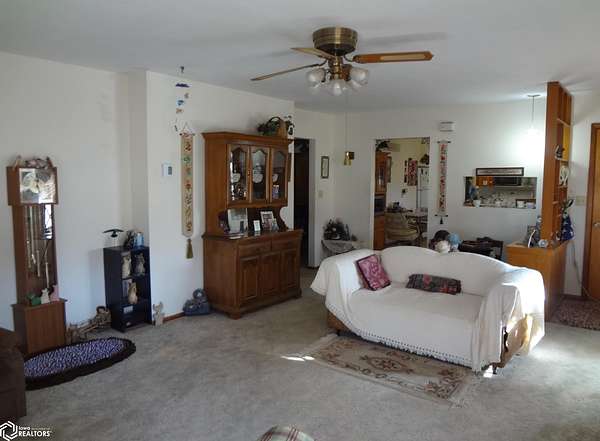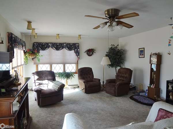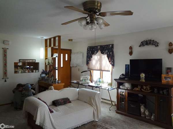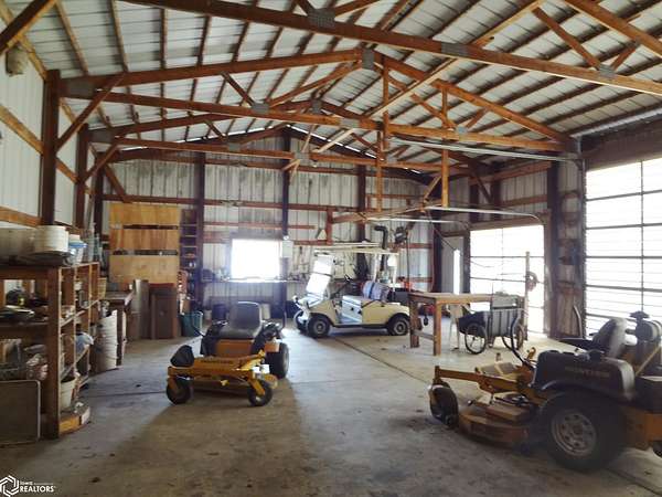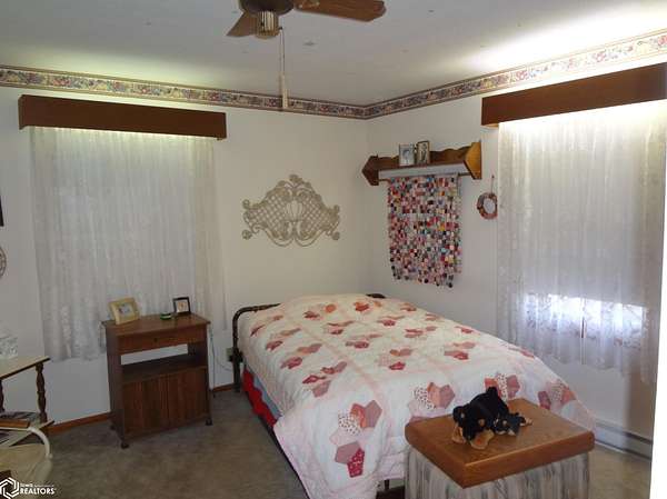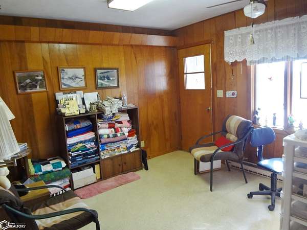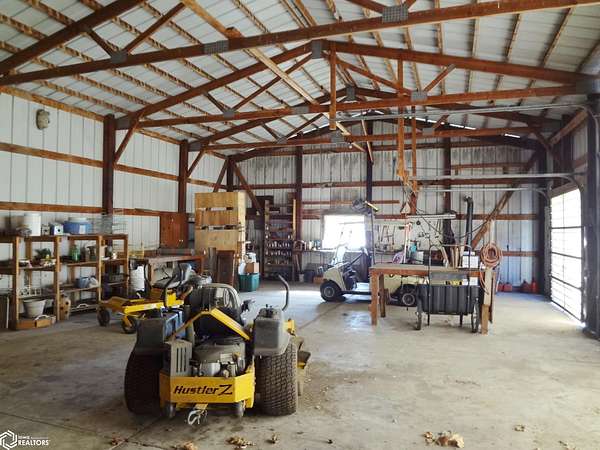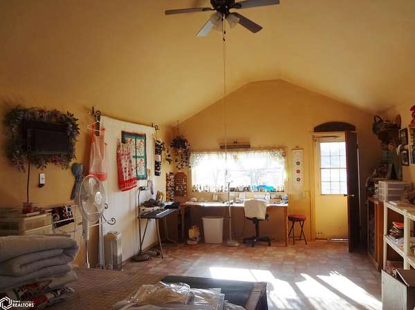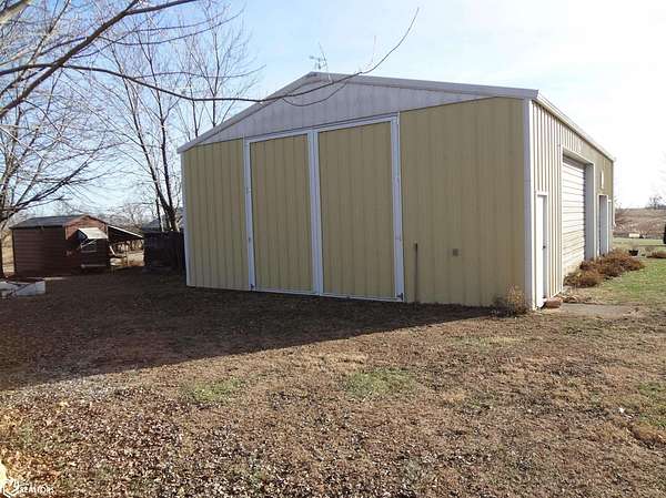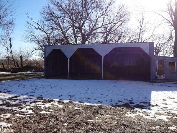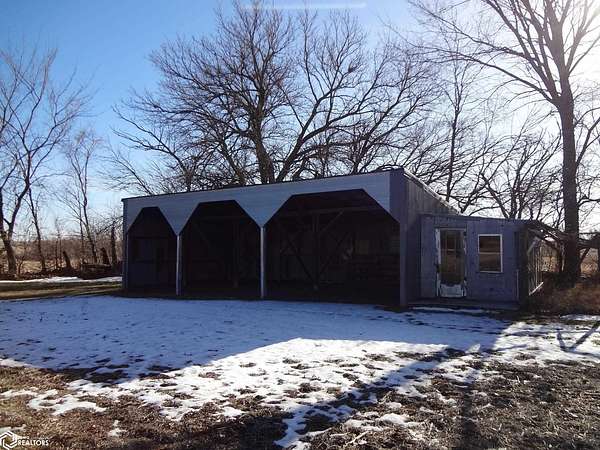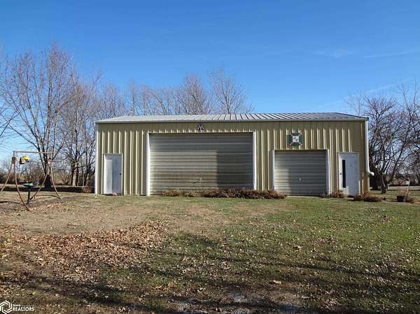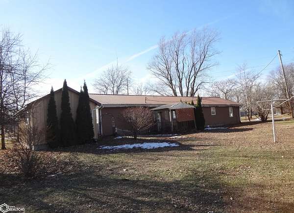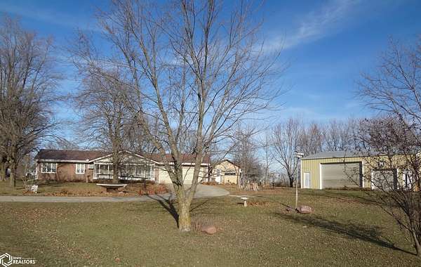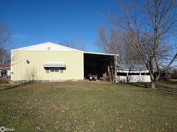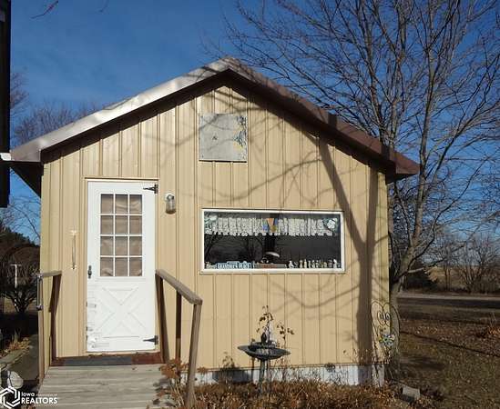 Here is a great opportunity for you to enjoy country living on this 4.76+/- acreage located on Hwy 25 in Clearfield, Iowa, directly across the street from the City Park. This charming well-maintained home features 2-bedrooms, 1 3/4 bathrooms, spacious eat-in kitchen with lots of cabinets, large comfortable living room, relaxing den area, utility room, screened in front porch, and a 2-car attached garage. There is also a 15'x24' Amish built finished sewing cottage behind the house which could be used for various other things such as an office, a shop, etc. You will find everything needed for a small hobby farm on this acreage including a large machine shed with overhead doors and a concrete floor, a garden shed, a loafing shed, an open storage shed to store miscellaneous items, a place to have chickens, lots of room for a garden and extra parking. Currently, there is approximately 2+ acres that has been row cropped. The house has newer siding, metal roof, storm windows and kitchen sink. This property is beautifully landscaped with a variety of trees and decorative rocks. It is move-in ready.