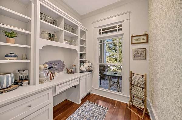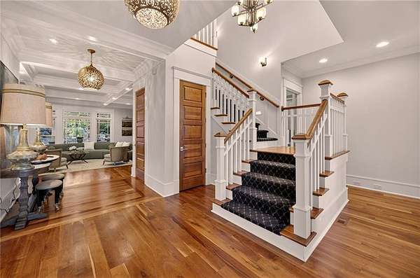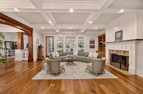 - Beamed Ceilings, Bookcases, Cathedral Ceiling(s), Coffered Ceiling(s), Crown Molding, Entrance Foyer 2 Story, High Ceilings 10 ft Lower, High Ceilings 10 ft Main, High Ceilings 9 ft Upper, His and Hers Closets, Recessed Lighting, Tray Ceiling(s)