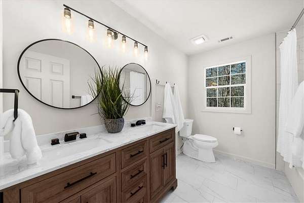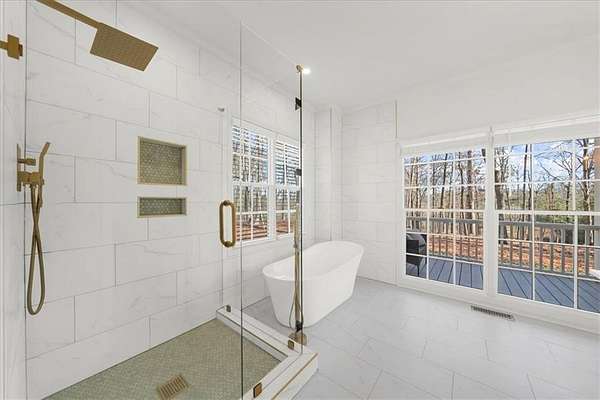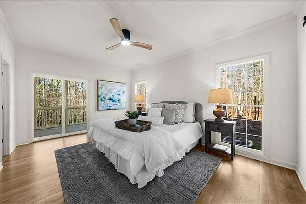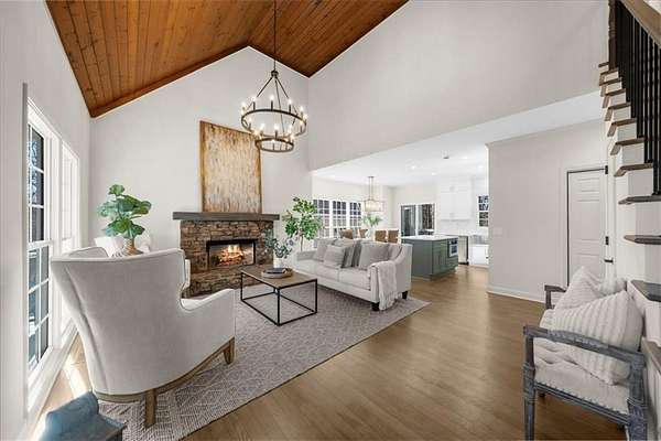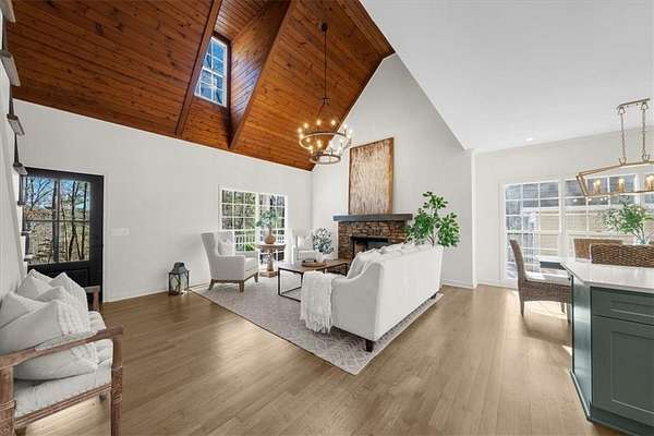 Just in time for Christmas, this completely renovated home, with NO HOA, is nestled on nearly 3 acres in the heart of Dahlonega, a town that is straight out of multiple Hallmark movies - where twinkling lights line the square, people still wave, and the holidays feel like they used to. Frequently featured in Southern Living Magazine, Dahlonega possesses a charming downtown mountain setting, wine country, and rich Gold Rush history. Make this town your home and wake up to the crisp mountain air and picturesque beauty of North Georgia, right outside your door. Mountain views peek through the trees as you relax on the spacious rocking chair front porch, surrounded by nature and privacy. Perfectly situated just minutes from downtown Dahlonega, this move-in-ready home offers the ideal blend of mountain town living, modern comfort, and small-town charm, all on a private 2.86-acre lot with NO HOA. Step inside to discover a warm and inviting interior featuring refinished 3/4-inch oak hardwood floors on the main level and steps, and new LVP flooring upstairs. The main living space is highlighted by a striking wood-accented cathedral ceiling with custom millwork, adding architectural character and warmth without overwhelming the space. A wood-burning fireplace anchors the room and could be converted to gas if desired. Fresh interior paint, new lighting throughout, and updated interior door hardware complete the beautifully refreshed interior. The open-concept, chef-inspired kitchen is a true showstopper-designed for entertaining and everyday living. It features custom white cabinetry, a large island with a built-in hidden microwave, quartz countertops, a stunning tile backsplash, and sleek stainless-steel KitchenAid appliances, including refrigerator, dishwasher, and oven/range. A bright breakfast area completes the space. The main-level primary suite offers a serene retreat with sliding doors leading directly to the back deck, perfect for morning coffee or evening relaxation. The sophisticated master bath, along with the kids' bath and half bath, have all been completely renovated with modern finishes. Behind the scenes, extensive upgrades provide peace of mind, including two brand-new HVAC systems with new ductwork, a new water heater, crawl space encapsulation with new vents, new gutter guards, new exterior doors (front door, two slider doors, and side entry to garage), new outdoor spigots, a new rain pan on the chimney, and recent tree removal to enhance the property. Outdoor living truly shines. Enjoy the private back deck overlooking your backyard and acreage or take advantage of the breezeway connecting to the detached two-car garage, which creates an additional entertaining area ideal for grilling or relaxing. The garage features epoxy flooring and a new garage door opener, and the property also includes an outbuilding/barn with electric, and large enough to fit a vehicle, -perfect for storage, hobbies, or equipment. The home runs on a private well, offering added independence and savings. Conveniently located close to shopping and restaurants, with quick access to GA-400, the new medical center, and Dawsonville Outlets. Just minutes from Downtown Dahlonega, the UNG campus, Amicalola Falls, Camp Frank D. Merrill, and a collection of local wineries. Zoned for excellent schools. Be home for the holidays in one of North Georgia's most desirable small towns-the Hallmark-worthy Christmas town people dream of calling home. This is more than a home-it's a lifestyle you'll fall in love with.