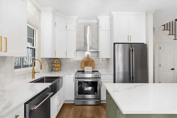 - Dishwasher, Electric Range, Microwave, Range Hood, Refrigerator