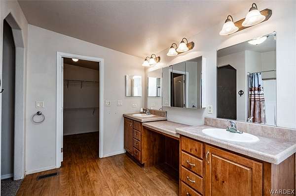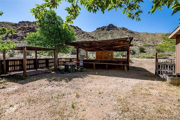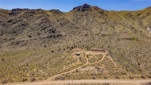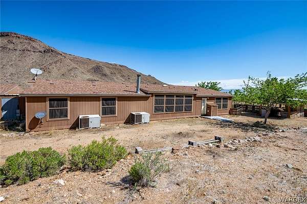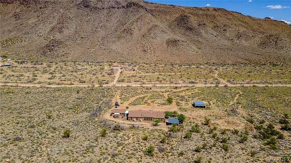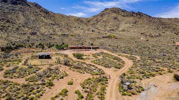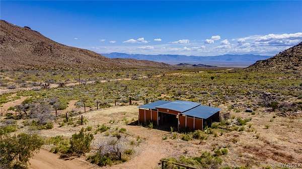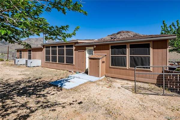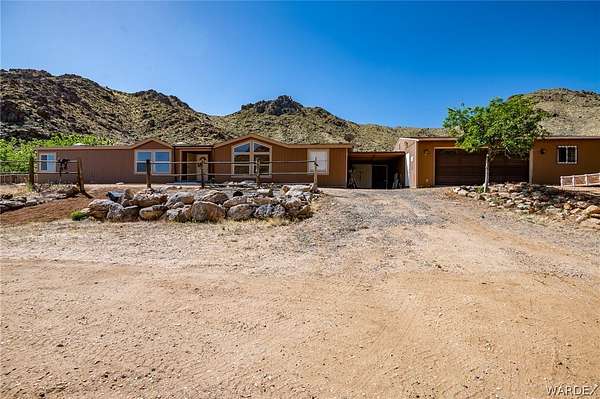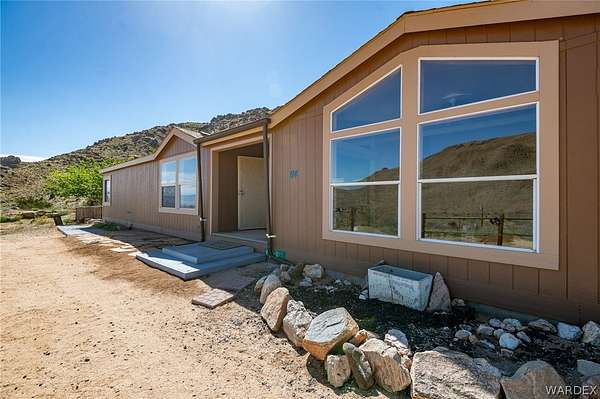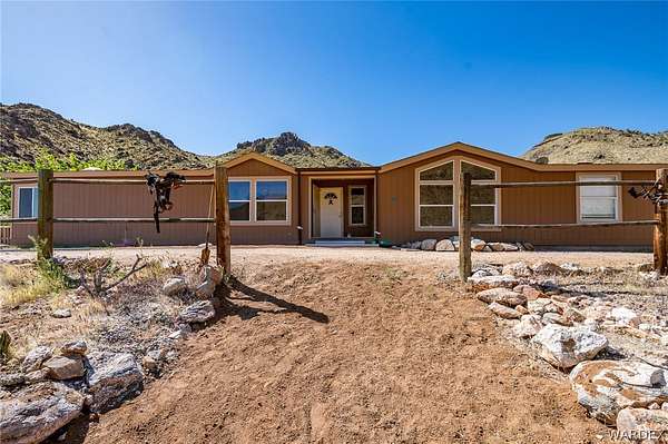 3,000+ SF HOME ON 6.4 ACRE HORSE PROPERTY: Welcome to the idyllic subdivision of Vock Canyon Ranches No. 2. Located approximately 12 mi north of Kingman in the Cerebrate Mountains, this secluded canyon offers the best of rural living with proximity to amenities. Situated on 6.4 acres of fenced land abutting a state section to the east, this parcel has picturesque granite mountain views with undisturbed natural desert terrain. Zoned AR/5A by Mohave County, this is residential/agricultural property, ideal for homesteading or equestrian endeavors. Nestled at the heart of the parcel, a 3,086 sf triple wide 4 bedroom, 3 bath 2006 manufactured home sits with an attached carport & oversized detached 2 car garage. Inside, vaulted ceilings & large windows accent the abundant space. A semi-formal dining room lies just east of the entry, & is flanked on the opposing side by an expansive family room. At the home's center, a large kitchen boats generous cabinet & counter space along with an island, walk-in pantry, stainless steel French door refrigerator, electric stove, & an above-mount microwave. Skylights & recessed lighting brighten the semi-open space, with a breakfast bar segueing into the rear living area. Here, a woodburing fireplace, built-in entertainment center, & 4 vast widows accent the rich coloration of the laminate flooring. The split floorpan places the 3 guest bedrooms at the west end, while the master suite comprises the eastern quarter, which consists of a sleeping area, sitting area, & an ensuite. In the ensuite, dual sinks, vanity lighting, a garden tub, water closet, and walk-in shower prelude the 8'x9.5' walk-in closet. Additional interior features: dishwasher, garbage disposal, remote controlled ceiling fans, window coverings, 1/2 bath, laundry room with cabinets, & a built-in desk/office area. Outside, unique rustic touches bolster the rural Arizona vibe. A separately fenced area shaded by mature trees hosts an outdoor bar, perfect for entertaining. The two HVAC units servicing the house sit out back along with a patio area. The 12'x18' carport & 30'x24' provide housing for toys & projects, complete with cabinets & shelving, & the rust red pole barn is finished off with corrals for horses & livestock. Additional exterior features: shared well, electric gate, grid electric, & watering system. This is not a home to miss!