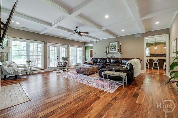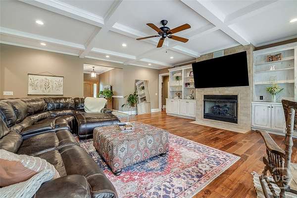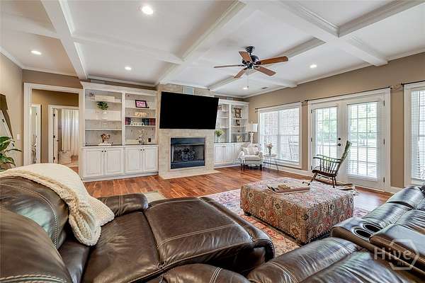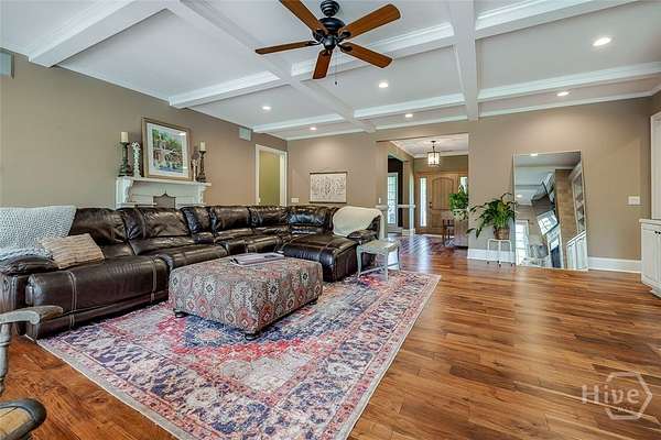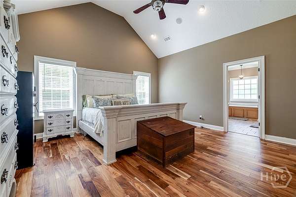 Welcome to this stunning executive home on a private 3+ acre lot in Wakefield Plantation. From the moment you enter, you'll appreciate the high-end finishes and attention to detail. The spacious great room boasts hand-scraped acacia hardwood floors, coffered ceilings, recessed lighting, custom built-ins, and a gas fireplace. The chef's kitchen features Quartz countertops, a unique wood backsplash, custom cabinetry, under-cabinet lighting, stainless appliances, a breakfast bar, and a walk-in pantry. The oversized primary suite offers hardwood floors and a vaulted ceiling, while the luxurious bath includes Quartz counters, a soaking tub, tile walk-in shower, and dual custom walk-in closets. Two additional baths and a large bonus room or optional fourth bedroom upstairs provide flexible living space. Tucked away on a peaceful, wooded lot-this private retreat is move-in ready and waiting for you!