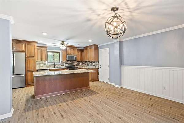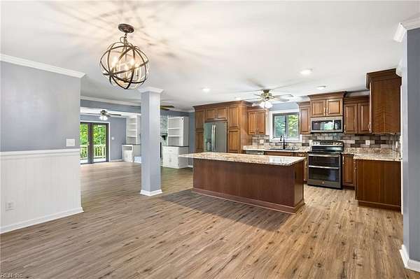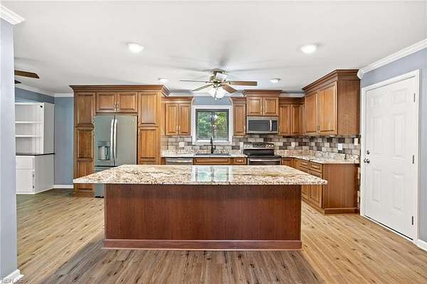 This beautiful updated home is nestled on a private 2.48-acre lot with views of the marsh in a quiet, established Williamsburg neighborhood. With over 2,300 square feet of thoughtfully designed living space, this home blends modern upgrades with classic charm. Step inside to find brand new luxury vinyl plank flooring, new plush carpet, and a renovated kitchen featuring updated cabinetry, stainless steel appliances, and granite countertops -- enjoy everyday living and entertaining. This spacious home offers multiple living areas, generously sized bedrooms, and ample natural light. A new roof provides peace of mind, while the expansive lot offers privacy and space to spread out for gardening, recreation, or future outdoor projects. The exterior features a deck for entertaining and taking in the natural views. Attached 2 car garage with additional parking space. The exterior has been painted. The washer and dryer work but are sold as is. The sheds located on the property are sold as is.