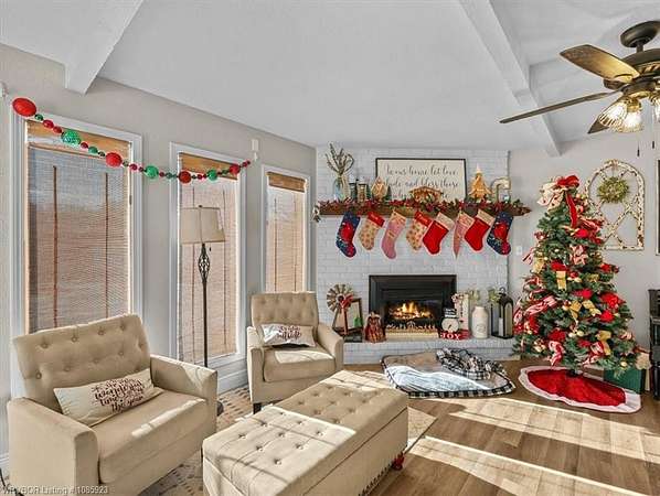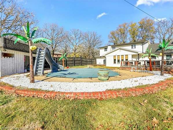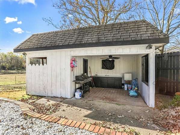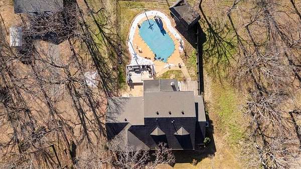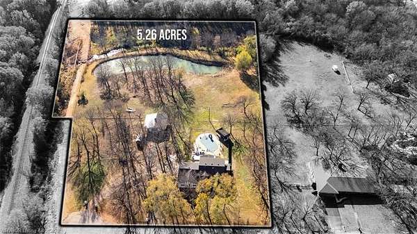 This exceptional 4-bedroom, 3-bath brick home offers 2,979 sq ft of living space and truly delivers the best of both worlds- peaceful country living with the convenience of being in town. Situated on 5.26 acres, the property features a stocked pond, frequent wildlife sightings, and ample space for livestock and gardening. The home features a spacious open living and dining area with a cozy fireplace, perfect for gatherings. The kitchen is thoughtfully updated with painted cabinetry, granite countertops, and stainless steel appliances, and is complemented by a large laundry room with abundant storage just off the kitchen. A guest bathroom with a walk-in shower is conveniently located off the main living area. The primary suite is located on the main level, offering comfort and privacy. Outdoor amenities are just as impressive, showcasing an in-ground pool with pool house, plus a newly built barn with a gravel floor and pull-through access; ideal for equipment or animals. This property offers space, functionality, and lifestyle all in one beautiful setting.
