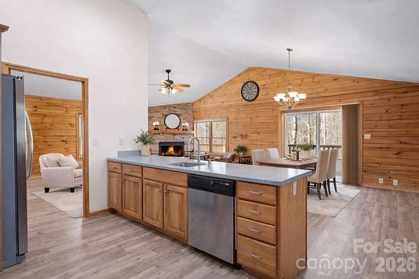 Escape to a peaceful retreat in the glory of the North Carolina Mountains! This beautifully crafted 3-bed, 2-bath log cabin sits tucked within Clearwater Creeks gated Community and offers the perfect blend of privacy, security, community, and natural beauty. Step inside to an open floor plan with a stone fireplace in the great room that flows freely into your kitchen and dining area with ample space to entertain. Navigate through glass doors outside to an expansive deck that overlooks the property. Feel free to let your animals play in the completely fenced in yard and enjoy wildlife in this picturesque setting where you can sit by the firepit with a cup of coffee. Brand new roof with transferable warranty in 2025. There is a home warranty until 4/1/2026 which can be renewed. You can have all of this at a great price and let's face it . . . a setting like this is really priceless!! Schedule your visit today!