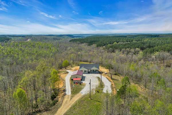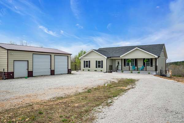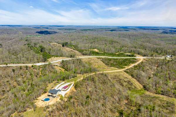 There is not much you couldn’t dream of doing with this beautiful newly built, spacious home nestled on 32 secluded acres! This versatile estate boasts a new home built in 2024 that’s move in ready and lots of room for a growing family, multi-generational living, or entertaining overnight guests with a total of 5 bedrooms & 3 full baths. Main floor has 3 BR’s and 2 full baths, with beautiful 10 ft tray ceilings in both living room & master BR. The full finished basement could serve as separate living quarters with a full kitchen with appliances, roomy living area with two BR’s and 1 full bath. Most of the warm and welcoming downstairs furnishings can convey. With its own separate entrance and amenities, the downstairs is set up perfectly for an in-law suite or Airbnb. Enjoy breathtaking sunsets from your screened in porch that opens to a large deck area overlooking the beautiful contour of the valleys and ridgelines of your estate. Walk out from downstairs into your patio hot tub, or onto the pool deck to get some sun or take a dip in the pool. Enjoy the convenience of an attached drive-in garage. Additional 24x36 detached garage with 2 10 ft doors can house your ATVs or boats. Garden, deer and turkey hunt, or trail ride without ever leaving your property, There are also two RV hookups with water and 50 amp electric service. Property is less than 10 min from Kentucky Lake access and is in a prime area for hunting. The views of the high ridges rising above Kentucky Lake from this property are stunning. Don’t miss this opportunity to own this gorgeous home on your own peaceful and secluded acreage abundant with wildlife, and minutes from fishing and boating. Experience the perfect blend of outdoor activities, scenic beauty, privacy, with all the modern amenities and convenience. 15 minutes from downtown Waverly and an hour from Nashville. This is truly a unique piece of Tennessee Paradise. Protective restrictions to help preserve the value of your investment.