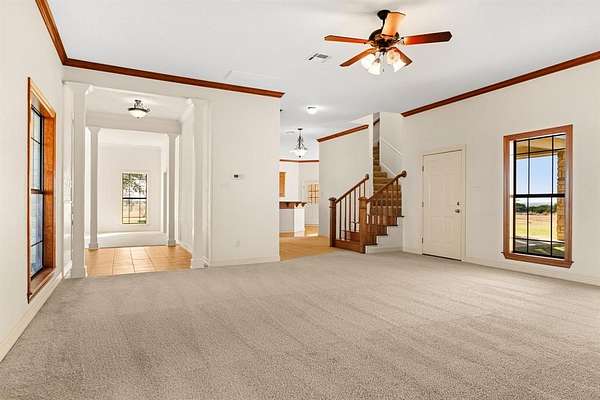 Not many properties stop you at the gate. Two Hawks Ranch does. Tucked off a paved road minutes from Hwy 84 in Coryell County, the outside world goes quiet the moment you arrive. Two stock tanks catch your eye on the drive in, rolling pastures open up on both sides, and the custom ranch house sits perched on the high ground ahead with views that earn every square foot of the drive. At 3,725+- sq ft, the home has the bones you want and the finishes you'd expect at this level. Three living areas, hardwood floors, new carpet, high ceilings, and a floor plan built for real ranch life. The primary suite features dual walk-in closets, separate tub and shower, and dual vanities. A bonus room upstairs is ideal for kids, and a third-story observation room above that gives you the best vantage point on the property. Three-car garage rounds it out. The land matches the house. Four stock tanks total, with two larger ones deeper in the ranch holding water where the wildlife pressure is highest. The open pastures are healthy and productive, carrying cattle without ever being pushed too hard. Where the pastures give way, dense cedar breaks take over, giving the native whitetail exactly the kind of cover they need to stay put and thrive. Native grasses, a working windmill, and a deep water well complete a land package that has been stewarded with real intention. A historic stone storm shelter built well before the house stands as a reminder of the legacy this land carries. 9 miles to Gatesville. 40 miles to Waco and Temple. 90 miles to Austin. Turnkey and ready for its next steward.