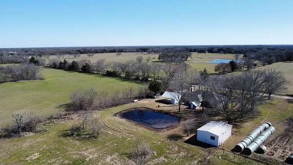Escape to the perfect blend of country living and modern convenience with this beautiful 3-acre property, just 10 minutes from Bois D' Arc Lake. Whether you're looking for a peaceful retreat or a place to spread out and enjoy the outdoors, this property has it all! As you drive up, you're greeted by wide open spaces and mature trees. The charming 3-bedroom, 2-bath home offers a spacious and inviting layout, featuring a large living area with a cozy fireplace, perfect for gathering with family and friends. The open-concept kitchen and dining area make entertaining a breeze, with plenty of counter space, modern appliances, and beautiful cabinetry. Need extra space? The flex room provides endless possibilities! Whether you need a home office, gym, playroom, or craft space, this room can be customized to fit your lifestyle. The primary suite offers a peaceful retreat with an en-suite bath, while the additional bedrooms provide comfort and functionality for family or guests. Step outside to truly appreciate what this property has to offer. A large pond adds to the picturesque setting, inviting you to enjoy the view. The shop is perfect for hobbies, storage, or a small business, while the chicken coop is ready for you to embrace farm-fresh living. With 3 acres of land, you'll have plenty of space for gardening, raising animals, or simply enjoying the fresh country air. Plus, being just minutes from Bois D' Arc Lake means easy access to fishing, boating, and outdoor recreation whenever you want. New roof October 2025! Don't miss out on the unique opportunity!