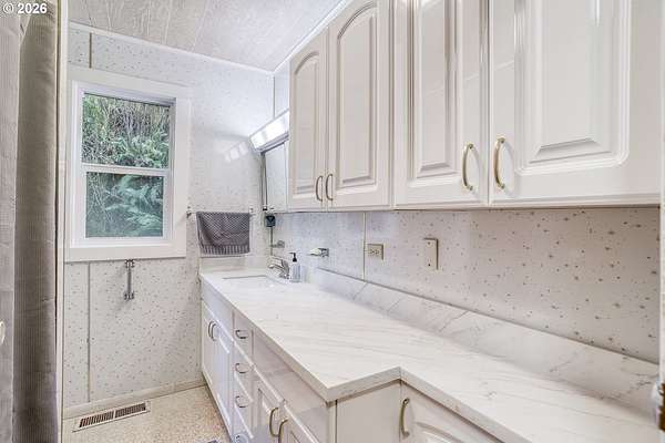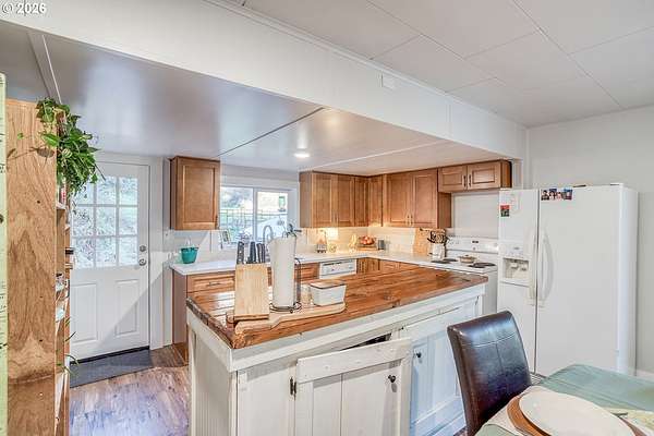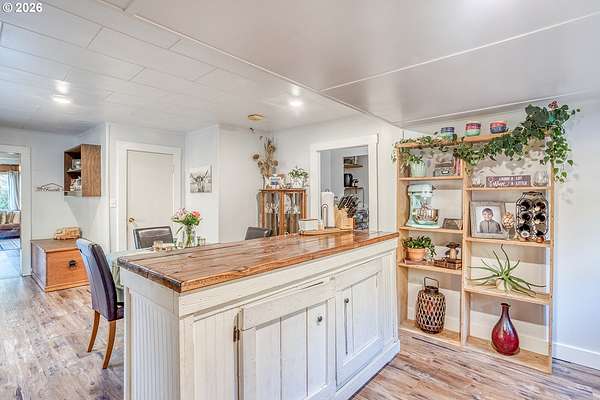 Country Living with Endless Possibilities. Set on 63.94 acres of private, tree-lined land, this beautiful retreat offers an ideal blend of comfort, privacy, and natural beauty. Enjoy mature apple, pear, and fig trees, a seasonal creek, and regular wildlife sightings, including deer and elk. Located not too far from Newport, you'll have easy access to miles of sandy beaches along the coast. Updates completed in 2021 include Hardie Plank siding, energy-efficient windows, a metal roof, new gutters, Trex decking, updated flooring, ductless heating and cooling, two water heaters, and a full water filtration system with sediment and UV purification. Recent 2025/2026 updates add a fresh look to the kitchen and bathroom, featuring new kitchen cabinets, backsplash, quartz countertops, and sink, along with new countertops and a sink in the main bathroom. Outdoor highlights include a 40x30 gated garden, a 12x12 greenhouse, a firepit patio, a three-bay shop with 220V power, and an on-site barn. With ample space, privacy, and thoughtful updates throughout, this property is ideal for a homestead, hobby farm, or peaceful country escape.