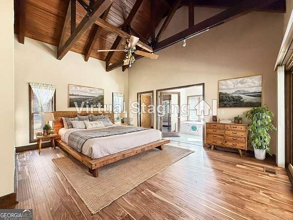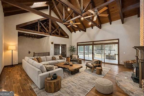 Tucked away on over 7 beautiful acres of level, private land, this custom-built home offers a rare blend of architectural character, generous space, and peaceful country living with enough space for you to bring your horses! Surrounded by open skies and natural beauty, this property delivers the privacy and freedom so many buyers are searching for (no HOA) yet remains conveniently located less than 5 miles from the highway. (But wait, theres more!!!- Imagine MORE acreage and a whole other custom house! -perfect for "expanded families" who would love to be close and want to combine acreage!! - Call listing agent for more info) Spanning more than 4,600 square feet, the home was thoughtfully designed with craftsmanship and comfort in mind. Some modern cosmetic updates would make this house stunning! Inside, soaring exposed beam ceilings create a striking first impression, adding warmth and timeless appeal to the main living areas. Abundant natural light fills the home, enhancing the open feel and highlighting scenic views from nearly every room. A standout feature is the sunroom that runs almost the full length of the house, offering a versatile space to relax, entertain, or enjoy the surrounding landscape year-round. Whether used as a casual sitting area, plant room, or additional gathering space, it seamlessly connects the indoors with the outdoors. The main level features a desirable Ranch layout with a spacious master bedroom and bath, providing both privacy and functionality for everyday living and hosting guests. The additional secondary bedrooms are conveniently located downstairs, each with their own private bathroom, (specifically designed for wheelchair access). With thoughtful cosmetic updates, this well-built home presents an excellent opportunity to personalize while preserving its unique charm. Downstairs, the fully finished basement opens the door to countless possibilities. Already added is a second kitchen, making it ideal for an in-law suite, private apartment, or multi-generational living. you can easily accommodate a recreation room, home theater, fitness space, or guest quarters. Outside, the expansive acreage invites endless opportunities-homesteading, gardening, recreation, or simply enjoying the peace and quiet of your own land. A detached structure with utilities adds even more flexibility, perfect for a workshop, additional storage, or other pursuits. Located in scenic Moreland, Georgia, and eligible for 100% USDA financing, this property offers a lifestyle defined by space, privacy, and versatility. With solid construction, custom details, and room to make it your own, this is more than a home-it's a place to grow, gather, and truly settle in.