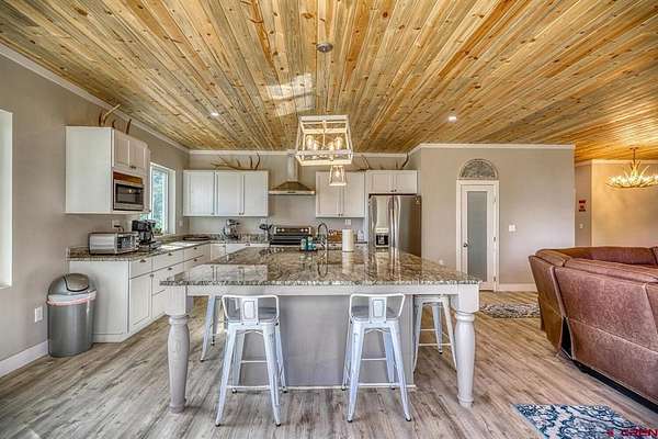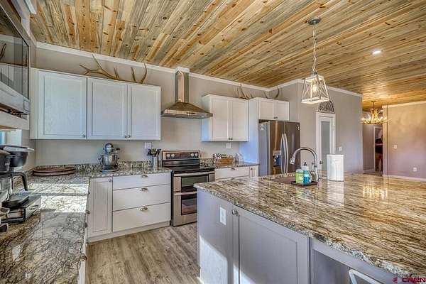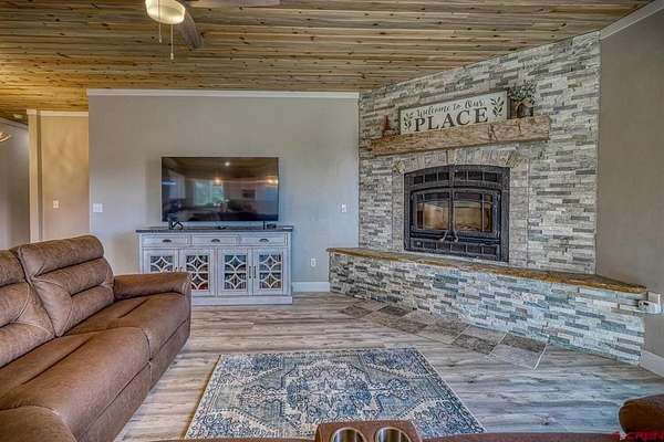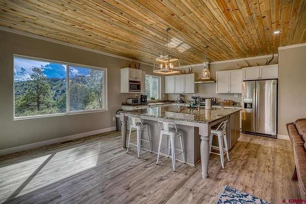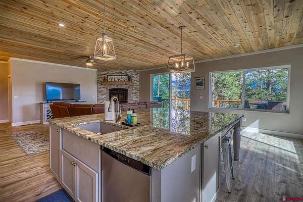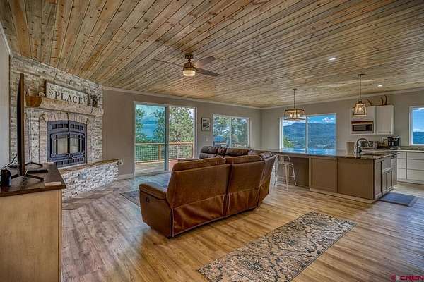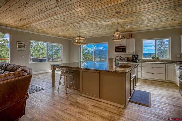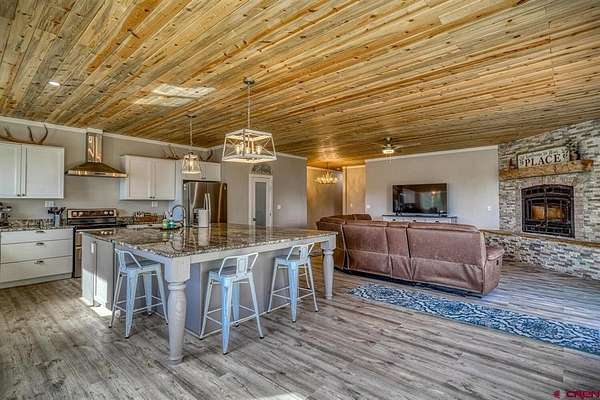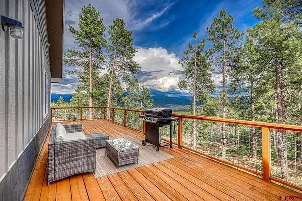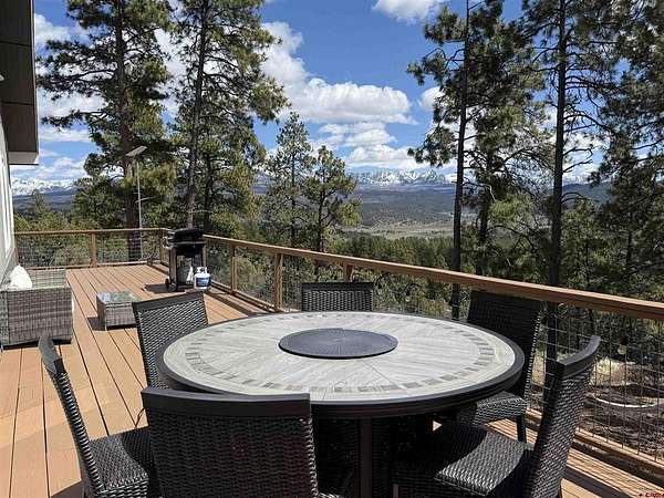 Juli Morelock, Galles Properties, C: 970-946-2137, juli@gallesproperties.com, https://julimorelock.com: Set on 35 private acres and surrounded by mature Ponderosa Pines, furnished 2,278 sq ft single-level low maintenance home offers the perfect blend of comfort, seclusion, and easy living. Enjoy stunning, unobstructed views of the San Juan and Chalk Mountains from nearly every angle, including the expansive back deck—ideal for relaxing or entertaining.The thoughtfully designed interior features 3 bedrooms and 2 bathrooms, with an open-concept living space centered around a log-burning rock fireplace. The gourmet kitchen is a true gathering place, complete with granite countertops, a large island, stainless steel appliances, and a spacious pantry.Offered fully furnished, this move-in ready home makes for an effortless transition into mountain living. The unfinished walk-out basement provides excellent potential for additional living space, guest quarters, or recreation. An oversized 2-car garage offers ample storage for vehicles and outdoor gear.A rare opportunity to own a private mountain retreat with exceptional views. Close proximity to National Forest Access. Enjoy the peace and quiet and exceptional dark skies for star gazing.