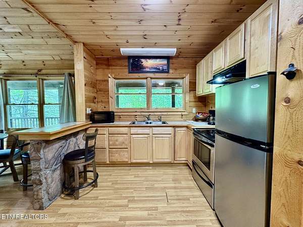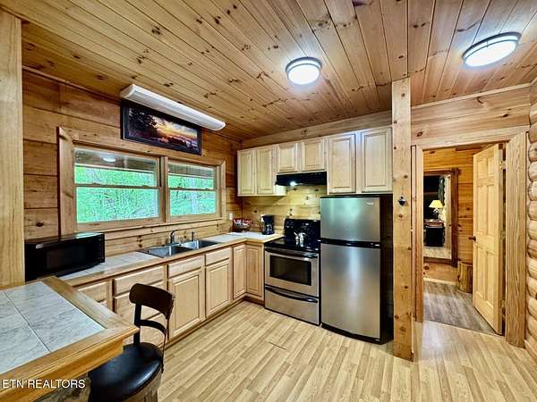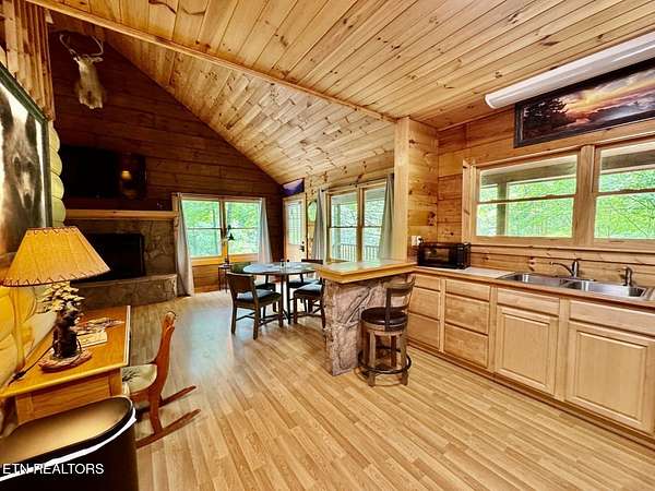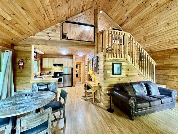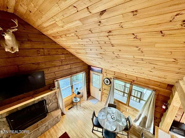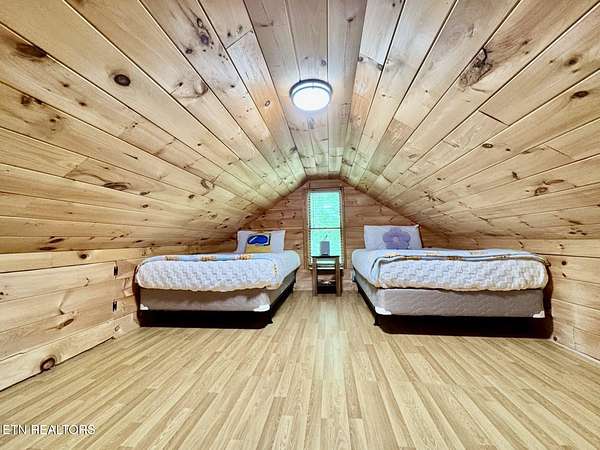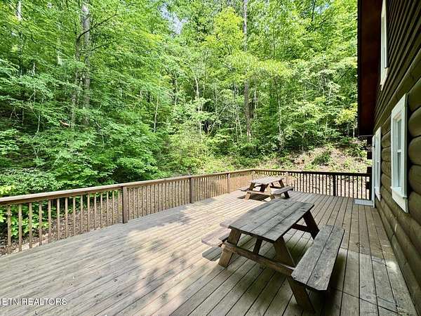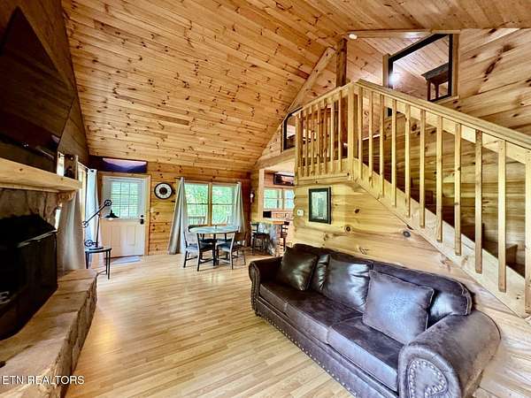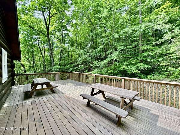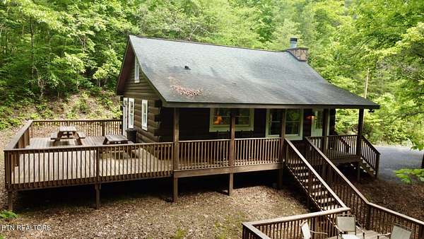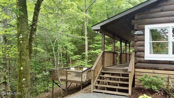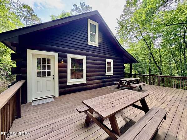 This charming cabin, built in 2005 and nestled on an expansive 5.05+/- acres, offers a serene woodland hideaway with proven rental income and outstanding investment potential. Currently operating as an established overnight rental with both current and future bookings in place, the property also features a cleared, pre-approved second cabin site with all utilities on site-making it ideal for immediate development. Currently projected to bring in around 60k in gross revenue in 2026. Located just minutes from Smoky Mountain attractions, this cozy retreat combines rustic charm with modern comfort. The open-concept layout boasts a warm and inviting living area centered around a striking wood-burning stone fireplace, creating a perfect atmosphere for everyday living or a high-performing vacation rental. The main level includes a spacious bedroom with ample closet space and direct access to a large outdoor deck, while a well-designed bathroom features a walk-in shower. Upstairs, a loft-style second bedroom currently accommodates two queen beds, ideal for hosting guests. Outdoor living is a highlight, with a covered front porch, generous side deck, and a lower-level deck with a fire pit, all set against the peaceful backdrop of a cleared meadow and lush woods. A well-maintained, well-lit driveway ensures easy and safe access. Financially, the property is a strong performer on AirBnB, generating strong occupancy. Sevier County approval and septic permitting already in place, the second cabin site offers immediate potential to expand your rental portfolio. Ideally situated just off New Era Road, the cabin provides quick access to Exit 407 (20 minutes), Downtown Sevierville (under 10 minutes), Pigeon Forge (less than 15 minutes), Gatlinburg (25 minutes), and Tanger Outlets (10 minutes), making it a rare opportunity to enjoy tranquil mountain living paired with strong investment returns in one of Tennessee's most sought-after vacation destinations. Air BnB link: