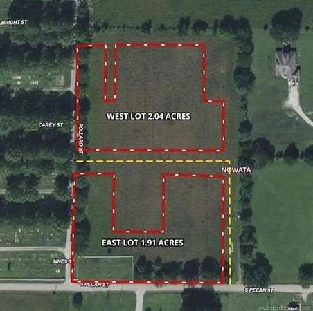 Prime Development Opportunity in Nowata, OK - Nearly 4 Acres Total (3.95+/- Acres) Discover the potential of these four contiguous parcels located within the city limits of Nowata, Oklahoma. Offering approximately 3.95+/- total acres, this property includes: 1.91+/- acres (East Lots) 2.04+/- acres (West Lots) Positioned in a quiet, established area, this property provides ample space for residential development, investment opportunities, or future expansion. Conveniently located approximately 50 miles north of Tulsa with easy access via US-169, this property offers small-town living with accessibility to city amenities. Enjoy proximity to Oologah Lake, a 29,000-acre lake featuring over 200 miles of shoreline, ideal for boating, fishing, camping, and outdoor recreation. Electric and city water available at the street Septic system needed (buyer to verify all utilities and requirements with the City of Nowata) Flexible Potential, with no known deed restrictions, the possibilities are wide open - build a custom home, develop multiple residences, create an investment property, or hold for future appreciation. All four parcels are included: 1146 S. Pecan St & 1140 S. Pecan St, Nowata, OK Parcel IDs: 1075-01-011-001-0-001-00 1075-01-011-025-0-003-00 1075-01-012-001-0-001-00 1075-01-012-020-0-003-00 Owner Financing Available with a min of $15,000 Down Payment. An exceptional opportunity to secure nearly 4 acres inside city limits - schedule your showing today!