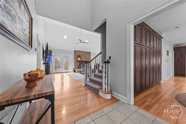 - Attic, Built-In Features, Butler's Pantry, Ceiling Fan(s), Double Vanity, Fireplace, Garden Tub/Roman Tub, Main Level Primary, Pantry, Programmable Thermostat, Pull Down Attic Stairs, Separate Shower, Vaulted Ceiling(s), Wet Bar, Wired For Sound