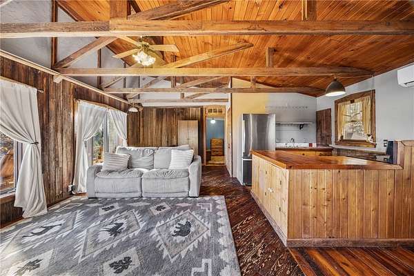 - Bedroom On Main Level, Cathedral Ceilings, Country Kitchen, Eat In Kitchen, Kitchen Family Room Combo, Living Dining Room