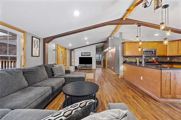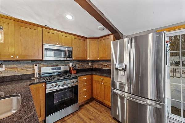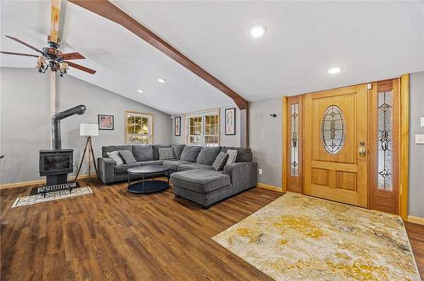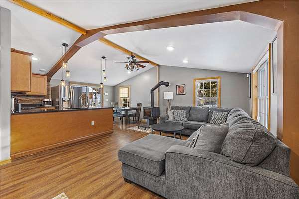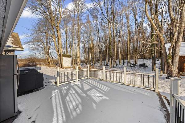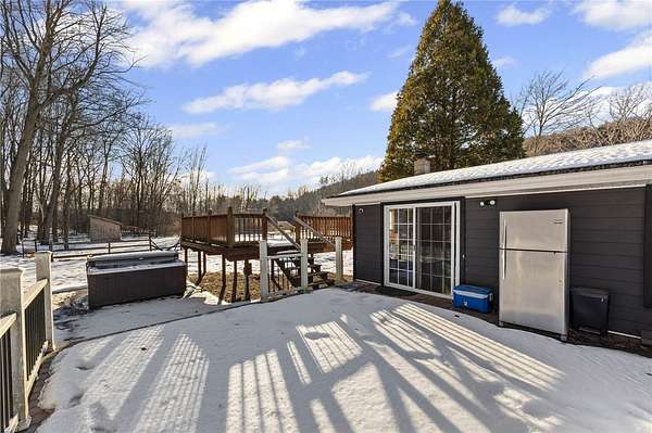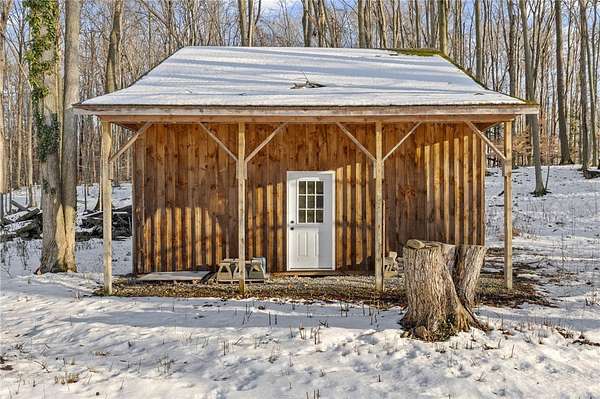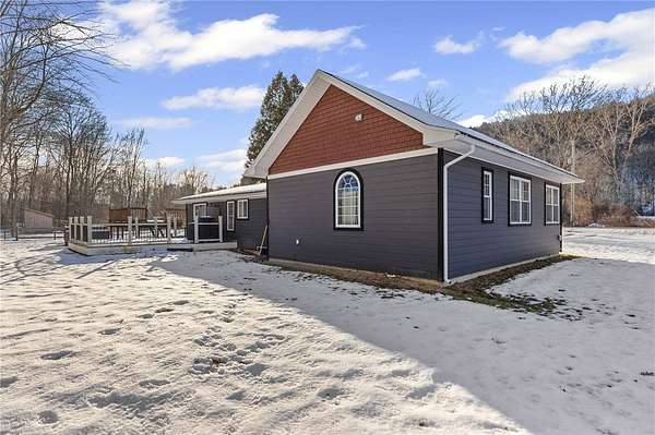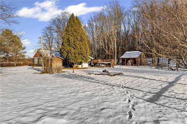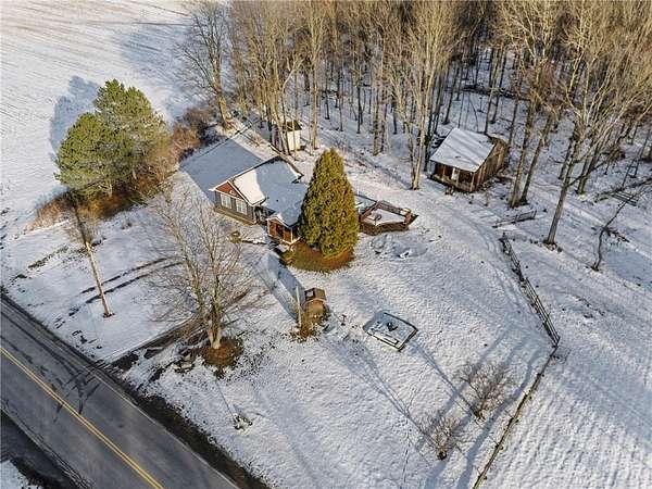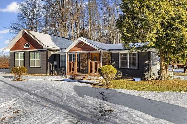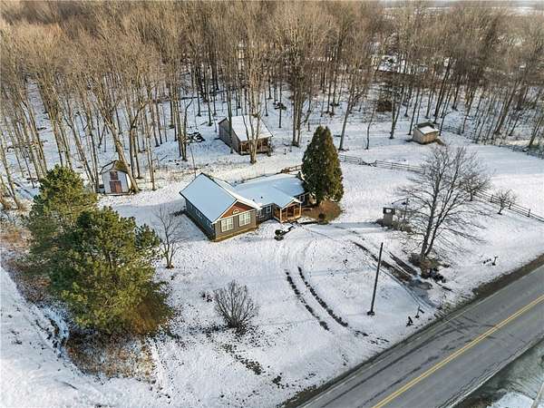 Set on 4.2 private acres across three separate parcels, this countryside ranch retreat at 11403 Canaseraga Rd delivers the best of both worlds-rural charm from the exterior with an updated interior. Built in 1975 and thoughtfully improved, the home offers 1,701 sq ft, 2 bedrooms, and 2 full baths, wrapped in peaceful rural surroundings. Step inside to find a clean, contemporary feel that contrasts beautifully with the rustic exterior. The eat-in kitchen features a gas stove and dishwasher, flowing comfortably into the main living space with a cozy wood stove. A significant 2018 addition introduced a primary suite, complete with a custom stone shower and a stand-alone soaking tub, creating a spa-like escape. This home is on a well and septic system and offers a full basement. A generator and new well pump provide everyday peace of mind. The outdoor living is just as impressive, with a low-maintenance Trex deck, a welcoming covered porch, and a serene environment. You will also find a lean-to and partial fencing, making animals the perfect addition. Multiple outbuildings, including a barn, a lean-to, and shed, offer ample storage and flexibility for hobbies or equipment. Ideally positioned near the popular ski destination, Swain Resort, this home offers winter recreation paired with the quiet appeal of country living. A distinctive opportunity for buyers seeking privacy, character, and modern comfort-this one truly stands apart.