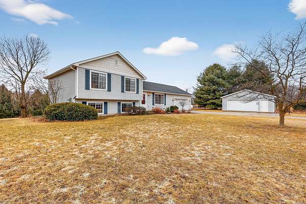 This beautifully maintained home is ready for its next owner! Quad-level design offers privacy while still being a part of everything. 4 bedrooms, 3 baths with an extra-large 2-stall garage/pole barn and a 2-tier deck. The upper level of the home has 3 large bedrooms, including a primary suite with walk in closet and a full bath. The main level has a great-room layout with a kitchen, dining area, and large living room. The dining area has sliders to the deck and back yard. The lower level has a large rec room, laundry area, and another slider to the large backyard. The 4th bedroom, located in the lower level has an egress window and large closet. The lot is a private setting on a cul-de-sac and a terraced yard that has a large deck that overlooks the backyard. There is plenty of room in the front yard as well as the back. The sellers have a fire pit set up for entertaining as well. Just north of Yankee Springs and a short drive to Middleville and Caledonia.
