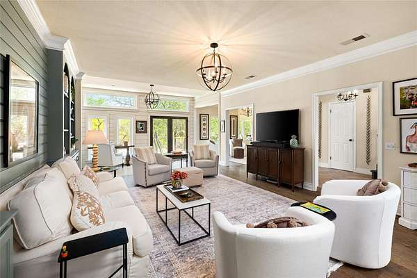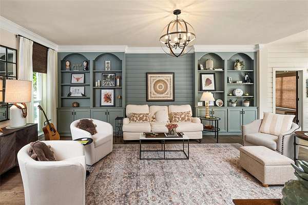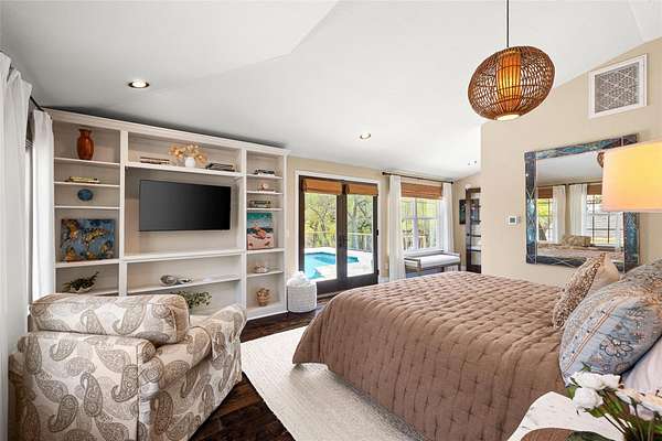 - Bookcases, Ceiling Fan(s), High Speed Internet, Interior Steps, Kitchen Island, Open Floorplan, Pantry, Primary Bedroom On Main, Sound System, Two Primary Baths, Two Primary Suties, Walk-In Closet(s)