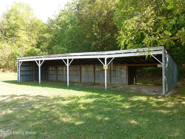 Rare opportunity to own a stunning 21-acre wooded retreat just off Bardstown Road, within walking distance of The Parklands at Floyds Fork. This property offers incredible potential as an investment for future development with access to all utilities, a private compound, or a personal playground with scenic trails, creeks, mature trees, and beautiful views throughout. The impeccably maintained ranch-style home features 3 full baths, a spacious primary bedroom suite, plus 2 other large bedrooms, hardwood floors, and a finished basement with a second fireplace in an extra-large entertainment room, dedicated office space, lots of extra storage and an oversized 2-car attached garage. A 1,470 SF detached garage/workshop provides ideal space for RV or boat storage, hobbies, or a home-based owner/operator business, along with 2 separate equipment sheds. Whether you're looking to live, work, play, or develop, this property offers exceptional flexibility in a prime location. A truly unique opportunity that blends privacy, natural beauty, and convenience.