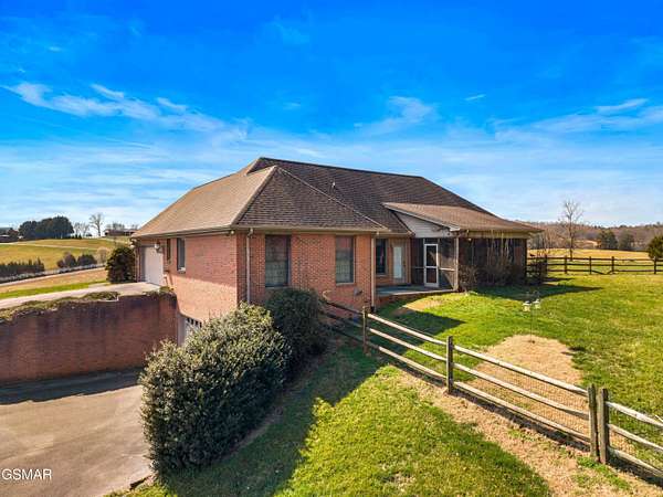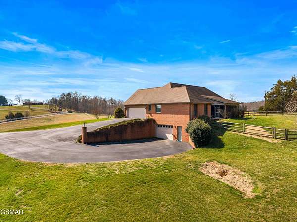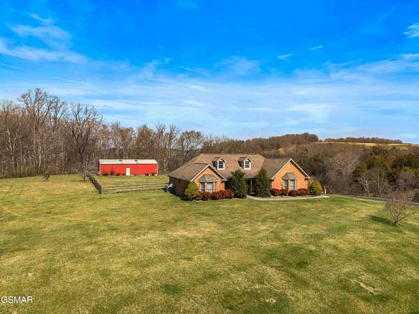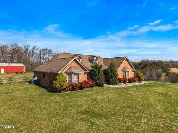 Tennessee Calling You! Built in 1999 by lovingly owned same family, this all-brick home sits on 12.8+/- peaceful acres bordered by Koontz Creek in the desirable Brookstone community--a neighborhood of just ten homes, each on 5 acres or more, where horses are welcome. The home offers approximately 2,100+/- square feet of heated and cooled living space, featuring 3 bedrooms, 2.5 baths, and a thoughtful layout designed for comfort and convenience. The primary suite is privately situated on one end of the home, with two additional bedrooms and a full bath on the opposite side. A spacious great room stretches from front to rear, offering access to a covered screened porch and a ground-level patio overlooking the expansive backyard--perfect for family gatherings, pets, or even future additions such as a pool or tennis court. The eat-in kitchen includes a center island workstation and easy access to the attached garage, which provides 2 vehicle parking and 2 more in its lower-level configuration. Enjoy mornings on the 216+/- sq. ft. front porch, taking in gorgeous mountain views, and evenings in your backyard oasis surrounded by nature. A 40'x40' metal barn/shop with double doors and a gravel base offers abundant space for large equipment, boats, or recreational vehicles. The property also offers additional acreage--four separate tracts of 4.5+/- acres each--available for purchase if you desire more land or investment opportunity. While the home will benefit from some updates and a refresh, pricing reflects this consideration. Located just 25 minutes east of Knoxville and convenient to Interstate 40, you'll enjoy easy access to shopping, dining, healthcare, and entertainment. The Great Smoky Mountains, Douglas Lake, Pigeon Forge, Dollywood, Sevierville, and Gatlinburg are all nearby, offering year-round recreation and charm. Enjoy a climate offering long, beautiful spring and fall seasons with mild winters. Come experience the Tennessee lifestyle--a place of beauty, freedom, and welcoming community. You may just find it feels like home the moment you arrive.