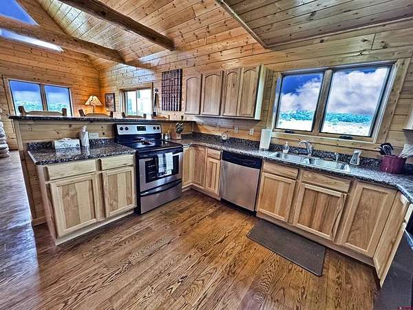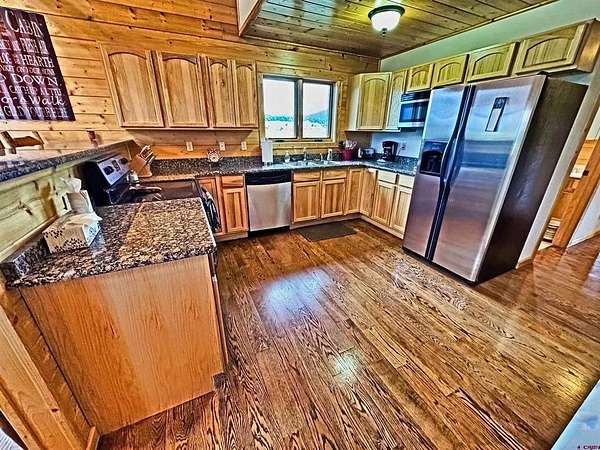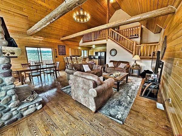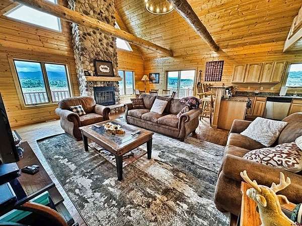 Suzy Woodward, Team Murphy Realty, C: 719-850-5042, suzy@teammurphyrealty.com, www.crenmls.com: Charming Log-Sided 3 bedroom, 2 bath Home in River Island RanchWelcome to your mountain getaway! This beautiful log-sided home sits on 5.37 peaceful acres in a private gated community just minutes from South Fork. Thoughtfully designed and fully furnished--including cozy cabin decor, kitchenware, linens, and appliances, this home is ready for you to move right in and start making memories. Step inside to an open, light-filled open floor plan with pine tongue-and-groove walls and ceilings, a gourmet kitchen with a breakfast bar, large pantry, and granite countertops throughout. The oak floors bring warmth to the space, while the striking river rock fireplace invites you to gather with family and friends on chilly mountain evenings.Expansive decks wrap around much of the home, offering the perfect place to enjoy morning coffee, watch the sunset, or simply take in the breathtaking views from every direction. The landscaping is easy to maintain with xeriscaping, and the home is finished with practical touches like concrete walkways and a buried propane tank. It has an excellent 15 gpm ARTESIAN well! As part of River Island Ranch, you'll enjoy unique community perks, including access to a private 10-acre island surrounded by the Rio Grande River. Owners and their guests can relax on the clubhouse deck, stay in the charming riverside cabins, or spend the day fishing Gold Medal waters just steps away. This is more than a home, it's a place to slow down, unwind, and enjoy everything the mountains have to offer.