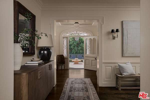 Originally built in 1938 for Hollywood actress Virginia Bruce, this gated Pacific Palisades estate is a rare blend of Old Hollywood glamour and modern luxury. Set at the end of a quiet cul-de-sac, the 7-bedroom, 8-bath residence spans over 8,000 square feet on more than 1.5 acres of lush, landscaped grounds. Manicured lawns, koi ponds, and meandering garden paths surround a pool, spa, and firepit, creating a true private compound.Inside, timeless East Coast architecture meets updated sophistication, with a Calacatta Gold marble kitchen, formal living and dining rooms, a British pub with hidden staircase, and a full guest apartment. The primary suite features dual bathrooms, custom dressing rooms, and a private balcony overlooking the gardens. Combining privacy, history, and luxury, this exceptional Pacific Palisades home offers a secluded retreat moments from Palisades Village and the co