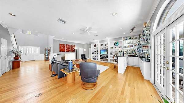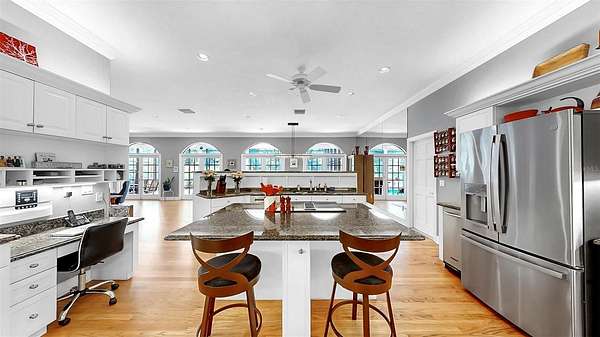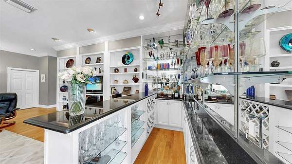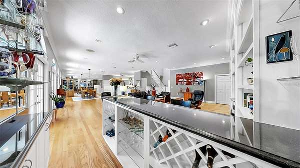 - Built-In Features, Ceiling Fans(s), Chair Rail, Crown Molding, Dry Bar, Eat-In Kitchen, High Ceilings, Living Room/Dining Room Combo, Open Floorplan, Primary Bedroom Main Floor, Stone Counters, Walk-In Closet(s)