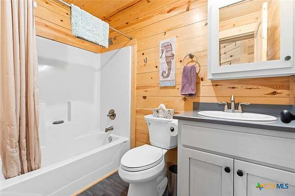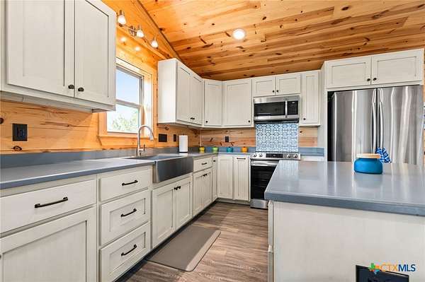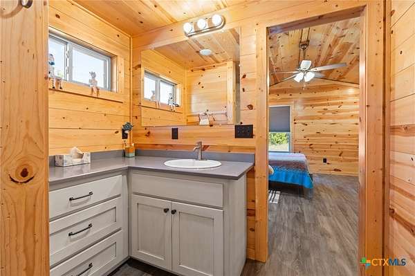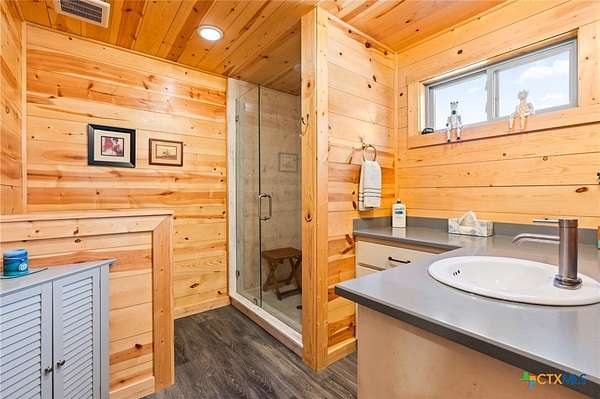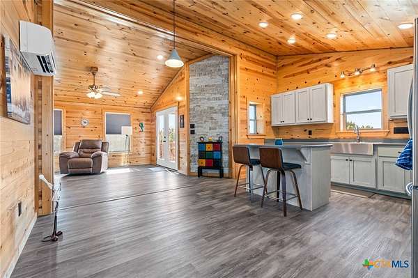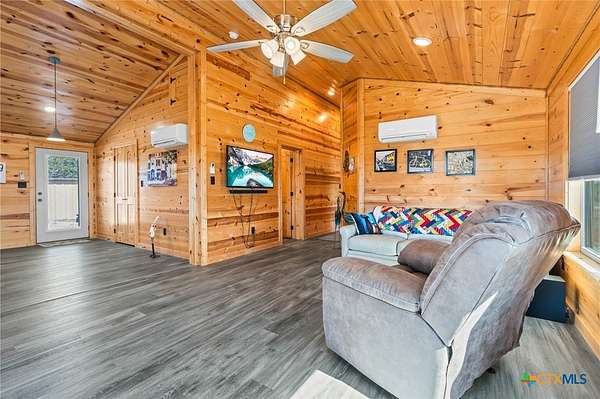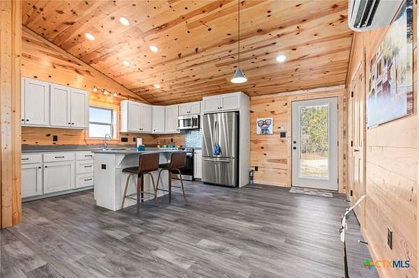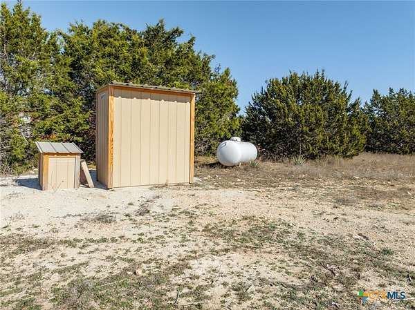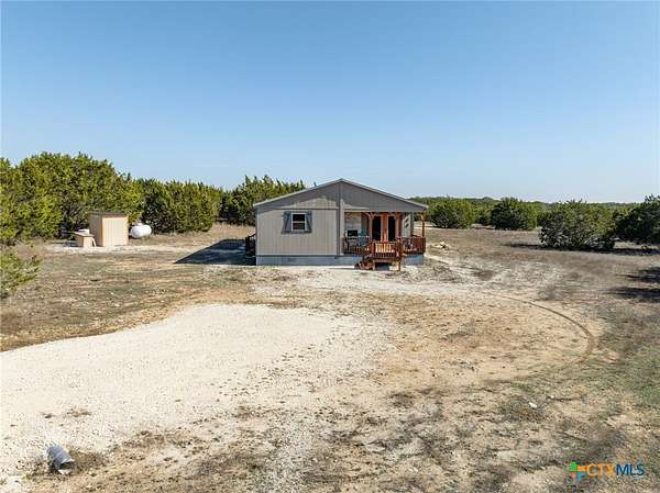 Beautiful 3-bedroom, 2-bath home offering approximately 1,313 square feet of living space, situated on 5.42 acres (Lot 85). This home features high vaulted ceilings and natural woodwork throughout, creating a warm and inviting atmosphere. Upon entry, you're welcomed into a spacious living room, with the kitchen conveniently located just off to the side. The kitchen is well-appointed with stainless steel appliances, a center island, and ample cabinet space for storage. All three bedrooms are generously sized, with the primary suite featuring an ensuite bathroom complete with a walk-in shower. Enjoy relaxing mornings or entertaining guests on the front porch, which includes a beautiful stone fireplace. The property also offers a one-car garage, on-site well and septic, and a 22kW whole-house generator for added peace of mind. Centrally located, the home is approximately 15 minutes from Copperas Cove, 30 minutes from Lampasas and Gatesville, and about 1.5 hours from Austin. This property is located within a subdivision and is subject to deed restrictions.
