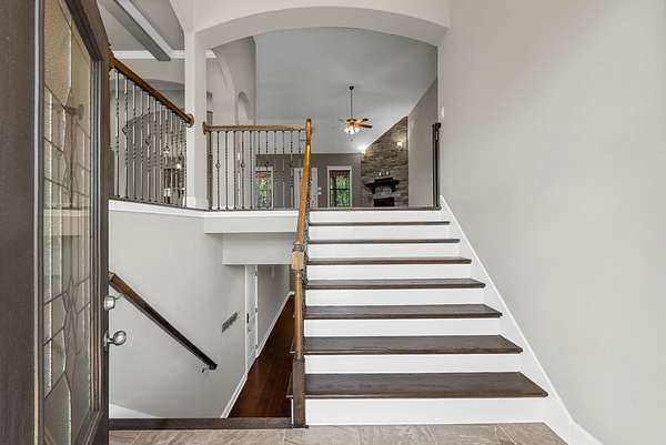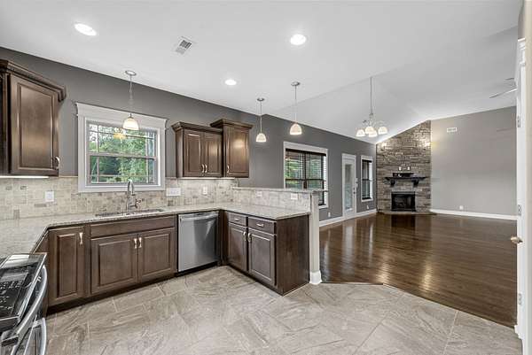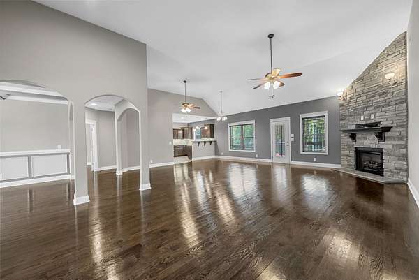 *FREE 2 YEAR HOME WARRANTY!! *VA Assumable loan with the amazing interest rate of 3.25%!!! Welcome to your amazing DREAM home sitting on almost 2 ACRES w/ a beautiful mature tree-lined lot! This home has 4 large bedrooms, a flex room/5th BEDROOM plus OFFICE in Primary Suite! Home features high ceilings, wood floors, open layout w/ formal dining, & cozy stone fireplace in the living room. The kitchen: GRANITE counter tops, tile backslash, pantry, & upgraded SS appliances. Primary bedroom features wood floors, high ceilings, PLUS an additional seating area or OFFICE. Primary bath - custom tile shower w/ double vanities, & a grand walk in closet. On lower level there are 3 large bedrooms, a full bath, laundry, additional living area, & a huge storage room. Picturesque view outdoors can be enjoyed from both levels - on large covered deck, or the covered patio. The 3 car garage w/ additional parking space is also a huge perk! This house literally has it all!