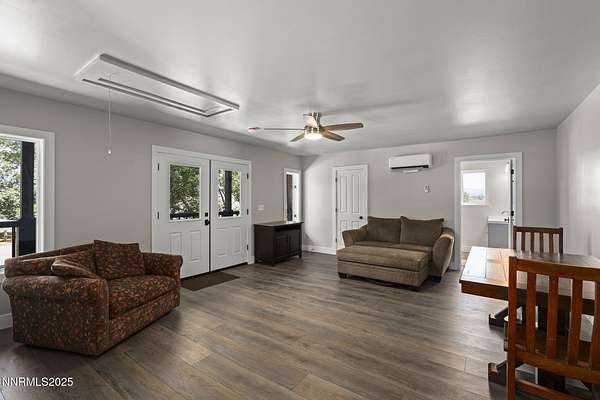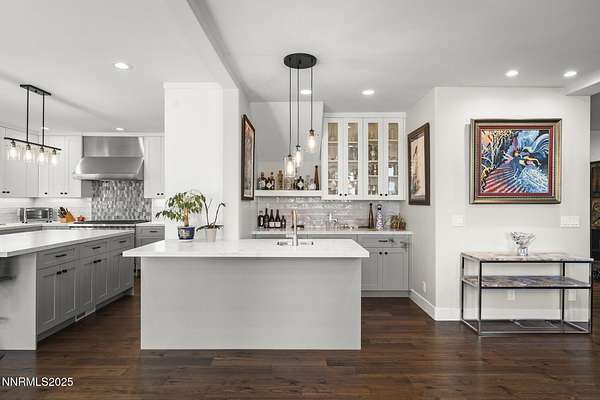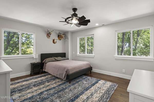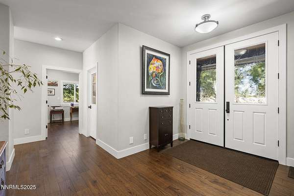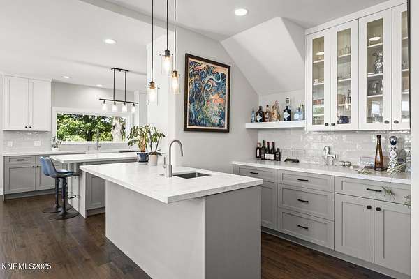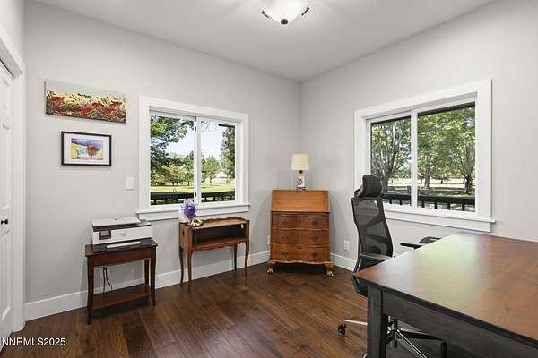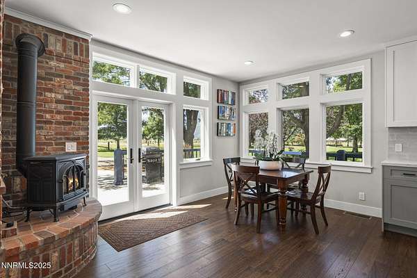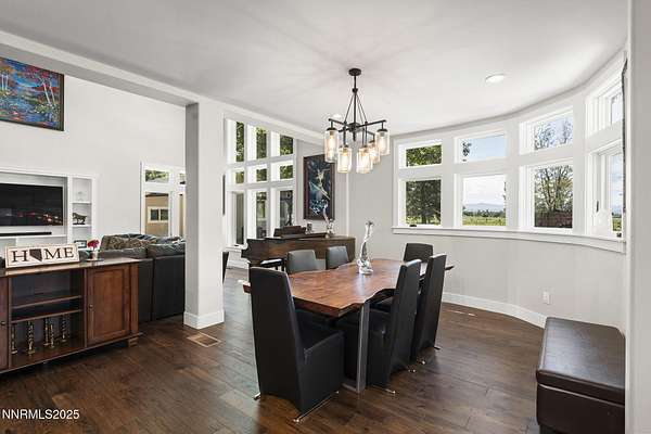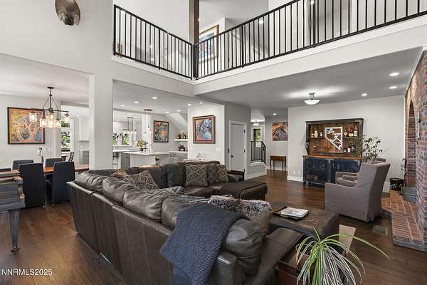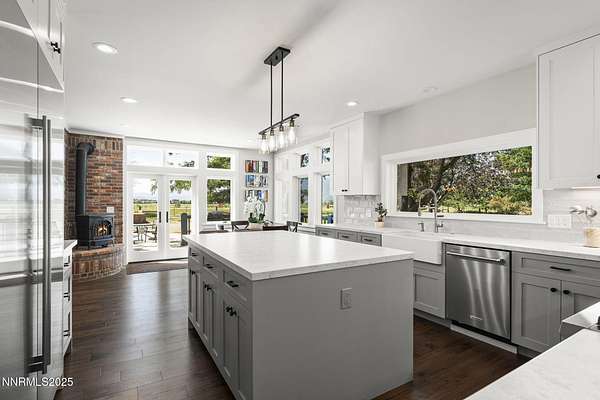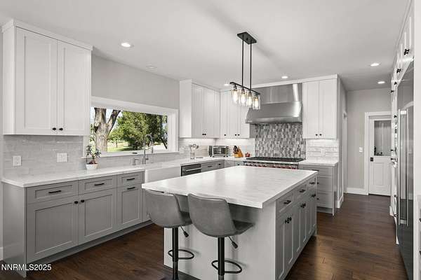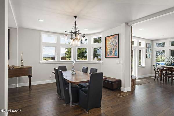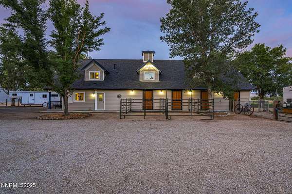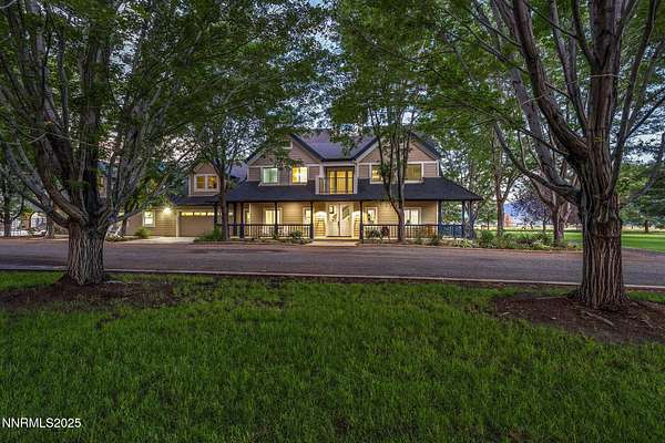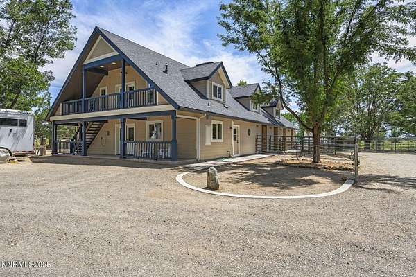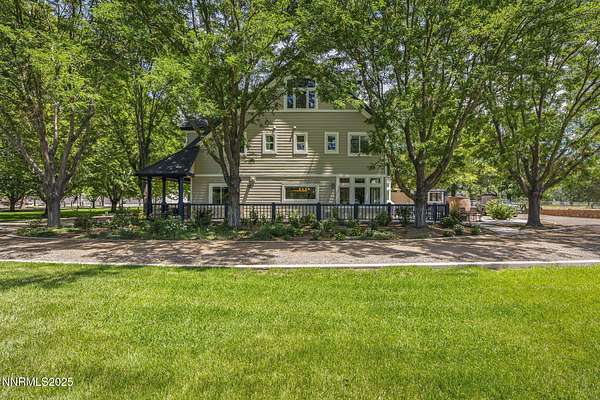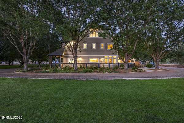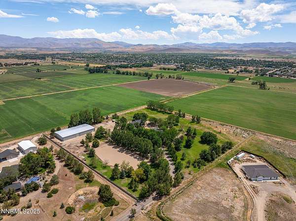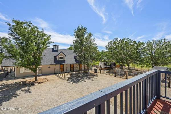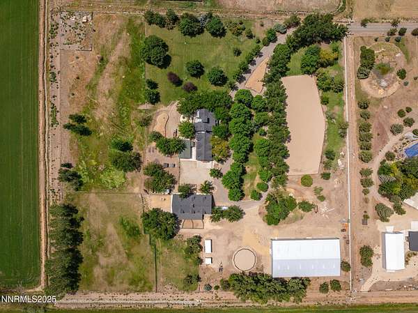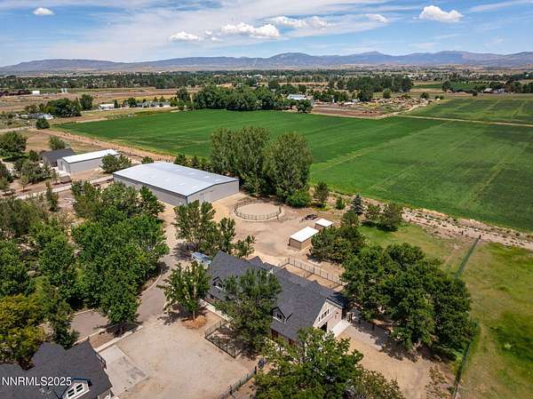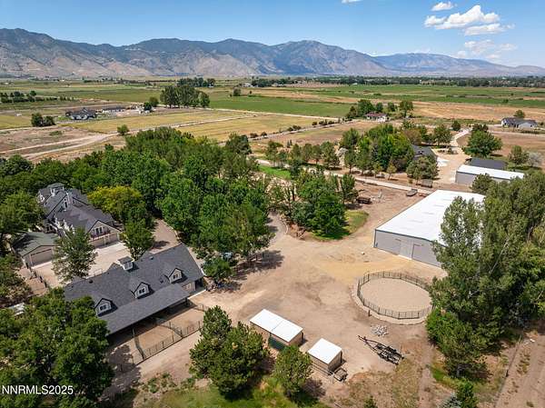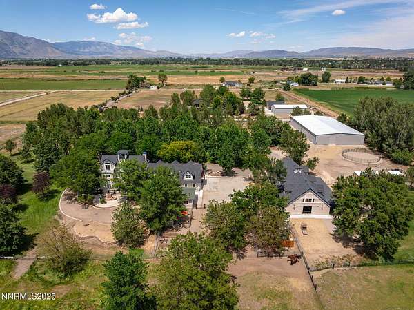 Dreaming of space for your hobbies, horses, or business, without sacrificing convenience? This Gardnerville showpiece offers it all: a like-new turnkey residence, incredible privacy just minutes from town, and unmatched facilities for work, recreation, and equestrian living. The 12,000+/- sq. ft. enclosed shop building (currently set up as an indoor riding arena) is complemented by a beautifully finished custom horse barn that could easily be reconfigured for traditional storage, workshop, or studio use. A separate shop/garage and seven+ additional garage bays provide endless flexibility for vehicles, equipment, and toys. There's even a dedicated home office or business space ready for your vision. Ideal for remote work, creative pursuits, or an additional living space. Situated on 10 manicured acres in the heart of Gardnerville, this exceptional property combines privacy, open space, and modern luxury. With mature trees, irrigated pastures, extensive outbuildings, and a fully remodeled home, it's built for both comfort and functionality. Since 2021 the home has gone through a comprehensive renovation that artfully blends traditional ranch-style architecture with modern elegance. The result is an expansive residence of roughly 6,000 square feet, including a large bonus recreation room above the attached garage. The home features five bedrooms & four and a half bathrooms, anchored by a warm and inviting main floor with high ceilings, custom wet-bar, original brick fireplace, and a fully redesigned chef's kitchen. Outfitted with custom 38-inch cabinetry, leathered quartz countertops, large center island with tons of storage, custom 30' Sub-Zero refrigerator and freezer towers, and an eight-burner Wolf range with stainless steel Wolf hood, side-by-side double ovens plus a steam oven. The kitchen is as functional as it is stunning. Don't like stairs? A functional elevator serves all three levels, leading to the top-floor primary suite, complete with private balconies, walk-in closet, and access to a cupola-style viewing loft known as the Eagle's Nest. The second floor features four bedrooms, two of which are ensuite, a third bathroom, laundry room, and multiple walk-out balconies overlooking the pastures and Sierra Nevada. Over the attached garage, a spacious recreation room provides the perfect setting for a game room, gym, studio, or guest retreat-all finished to the same exceptional standard. A connected east-wing structure offers approximately 1,000 sq. ft. of finished and unfinished space, ideal for an in-law unit or professional office. Equestrian facilities and outbuildings are exceptional. The fully renovated barn includes six custom stalls (expandable to eight), Nelson heated waterers, an indoor wash rack (hot and cold), and separate tack and feed rooms with a half bath. Above the barn, a remodeled studio apartment provides private accommodations for guests or staff. The 2021 built 12,000 sq. ft. metal building offers endless opportunities with LED lighting, skylights, and sliding barn doors, while the outdoor riding arena, cross fencing, and multiple covered shelters make this property perfect for those seeking equestrian facilities or useable space and storage for your hobbies or business. The grounds are both functional and beautiful-several acres of irrigated pasture, manicured lawns, and nearly 100 mature trees create a serene, park-like setting. The private well, equipped with a new 5-horsepower pump producing approximately 90 GPM, and established flood irrigation water rights ensure ample water supply. A Kohler 20 kW backup generator provides seamless power continuity, and the property is fully serviced by natural gas, septic, and NV Energy. There is abundant parking and a circular driveway for easy access and trailer turnaround. All improvements have been thoughtfully designed to create maximum usability and convenience. Book your private tour today!