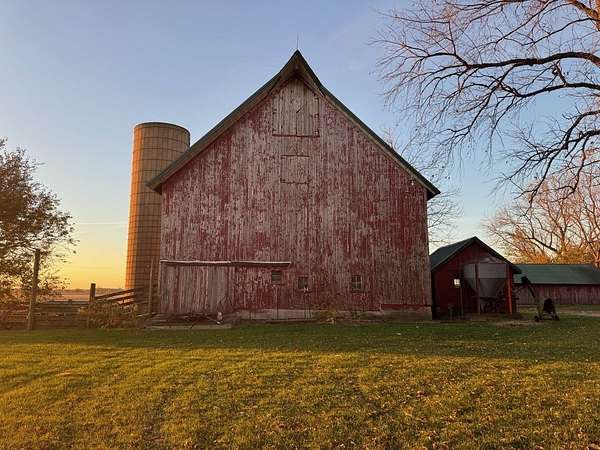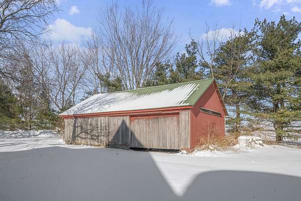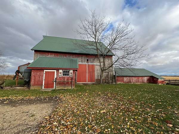 Wow! A 5-acre farm under $400,000! This property offers endless possibilities, featuring a charming 2-story home with new siding and gutters (2025), a 1-year-old furnace and AC, and efficient natural gas heat-no propane bills. The roof is only 5 years old. Inside, the kitchen includes a table-space eating area with pocket doors opening to the dining room, while the spacious living room offers French doors and views of the beautiful tree-lined property. The main-level 4th bedroom is currently used as an office, and the primary bedroom is generously sized. Outside, you'll find a 60x38 pole barn, a large barn with sliding door for farm equipment (with electric and water), a 2-story barn with electric and a metal roof, a milk house with water and electric, an additional outbuilding with electric, an insulated hen pen with electric, and a 1-ton feed bin. The land also includes apple trees, a raspberry bush, and asparagus. This rare property blends space, functionality, and rural charm-all at an incredible price.