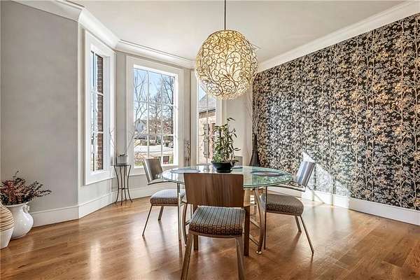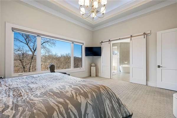 Nestled on a quiet cul-de-sac in the highly sought-after Talamore community, this exceptional European-designed luxury estate sits on over 4 acres. Often described as a French Country Craftsman, the home offers three levels of contemporary elegance, including a full second kitchen and in-law suite at the walk-out basement level. Step outside to a covered patio with a gas fireplace--perfect for entertaining alongside the expansive gunite pool, hot spa, and firepit--all overlooking a serene, forested ravine with a seasonal stream. Standout features include custom dual Y staircase with striking wrought-iron detailing, a wet bar, wine cellar, butler's pantry, and a "dirty kitchen" prep pantry, along with a host of additional upscale amenities.