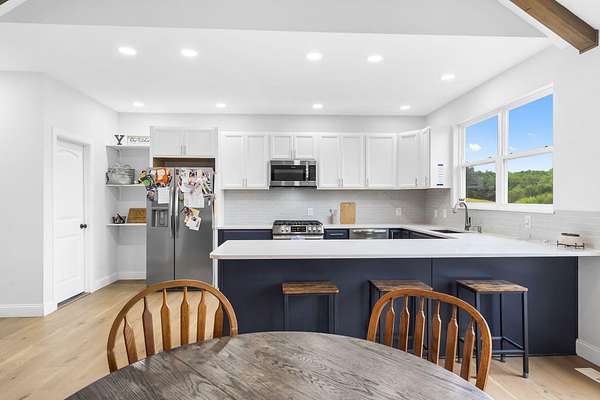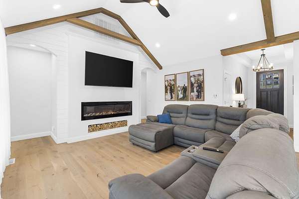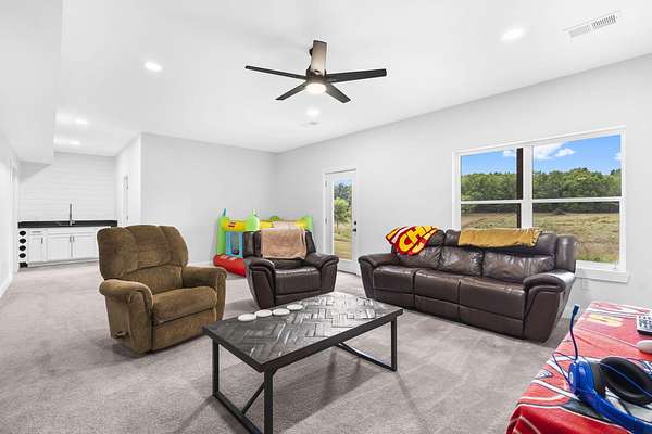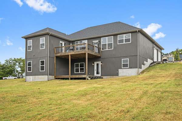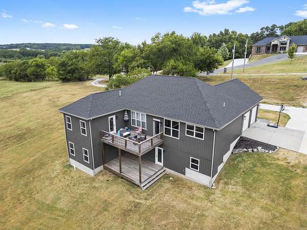 Nestled on 5 acres just outside Republic with convenient access to I-44, this property offers the perfect blend of country living and proximity to town. Thoughtfully updated in recent years--including a newer roof--this home is move-in ready and designed for worry-free living.Step through the front door and be greeted by soaring beamed ceilings, luxury engineered hardwood flooring, and abundant natural light. The kitchen showcases two-tone cabinetry, quartz countertops, stainless steel appliances with a gas range, and a spacious pantry. The primary suite offers a spa-like retreat with a soaking tub, walk-in shower, dual vanity, and a generous walk-in closet.Upstairs, you'll find two additional bedrooms and a full bathroom. The walkout lower level provides even more living space with a large family room, wet bar, bonus room, two additional bedrooms, bathroom, and two storage rooms.Outside, relax on either the upper or lower deck while enjoying picturesque views of the surrounding fields and trees.
