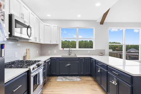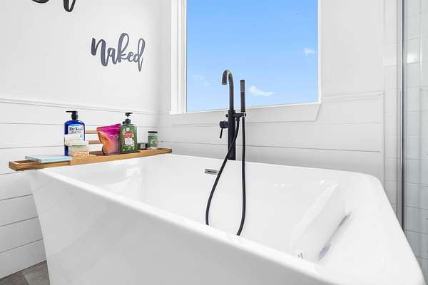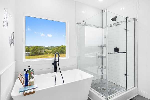 - Beamed Ceilings, High Ceilings, Quartz Counters, Soaking Tub, Walk-In Closet(s), Walk-In Shower, w/ Hookup