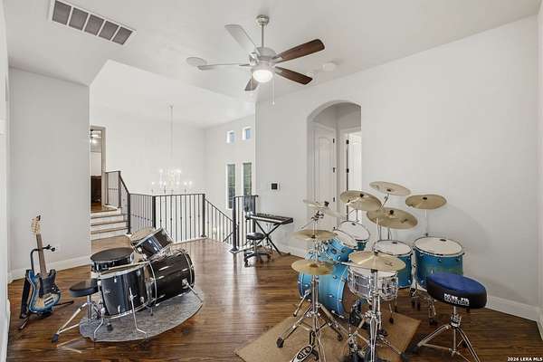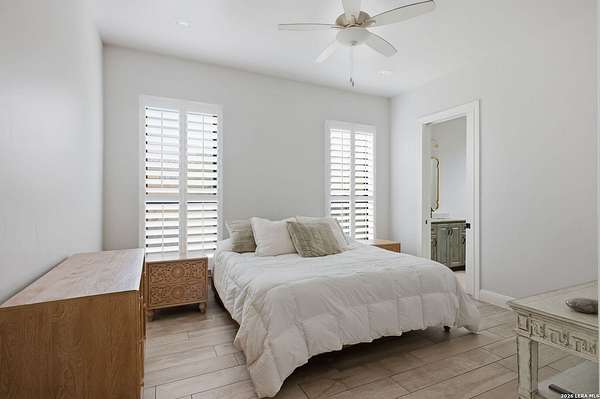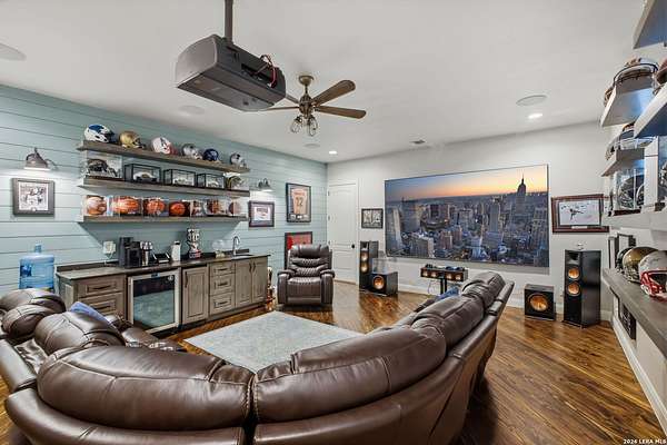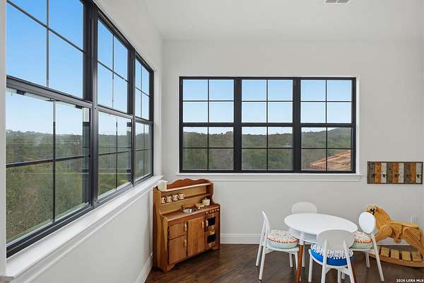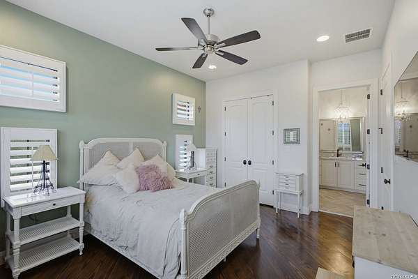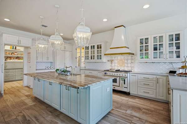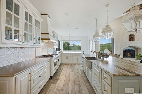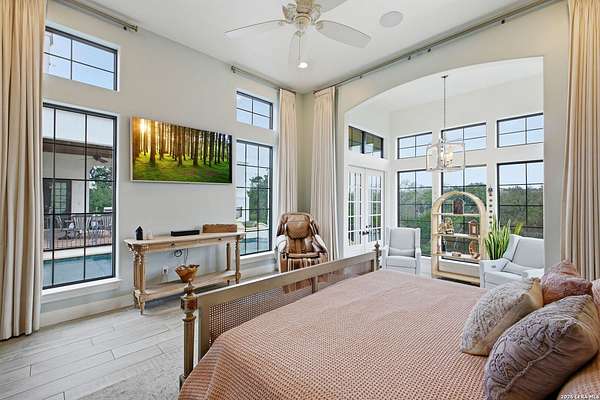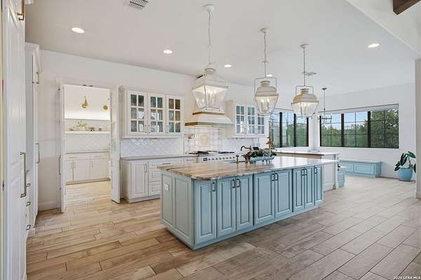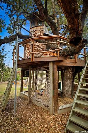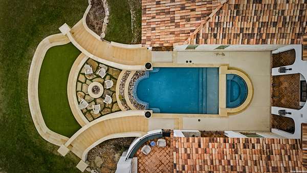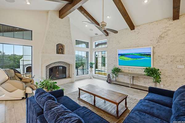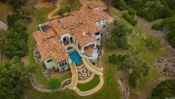 Welcome to an extraordinary estate in Anaqua Springs Ranch, one of Boerne's most exclusive guard-gated communities-where privacy, sophistication, and the beauty of the Texas Hill Country converge. Set on over two pristine acres, this exceptional residence reflects refined craftsmanship and intentional design at every turn. The main home offers five spacious bedrooms and six luxurious bathrooms, complemented by a private guest suite with its own bedroom and bath, ideal for extended stays, multigenerational living, or live-in support. The main level is designed for both everyday comfort and elevated entertaining, anchored by a serene primary suite retreat featuring a private sitting area with panoramic Hill Country views, along with an additional guest bedroom offering a generous ensuite bath. A formal dining room, expansive family room, and inviting breakfast area flow seamlessly into the chef's kitchen, appointed with high-end European appliances. A fully equipped secondary prep kitchen enhances functionality-perfect for private chefs or hosting at scale. A curated wine cellar, oversized pantry, and expansive utility spaces further elevate the home's livability. Upstairs, a spacious media room and versatile flex space provide endless possibilities-whether a private gym, game room, or additional lounge. Three additional bedrooms, each with ensuite baths, ensure comfort and privacy for family and guests. Outdoors, the estate transforms into a private resort-style retreat. A covered patio with fireplace overlooks a sparkling pool and sweeping Hill Country views, while thoughtfully curated amenities-including a custom treehouse, children's mud kitchen, and greenhouse-offer a rare blend of luxury and lifestyle. A long, private driveway creates a grand sense of arrival and provides ample parking for residents and guests alike. This is a rare opportunity to own a legacy property in one of the Hill Country's most prestigious communities-where luxury, lifestyle, and location align.