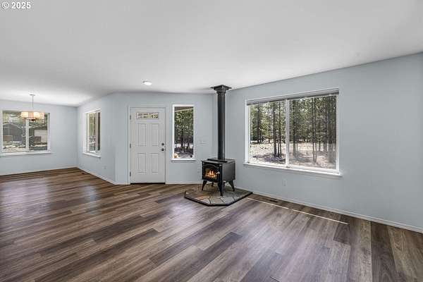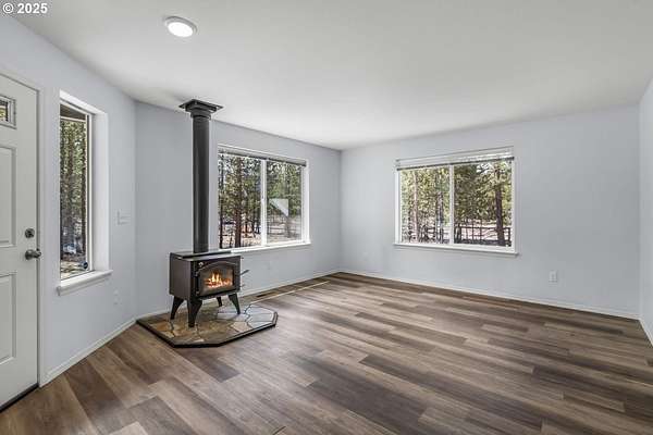 Quiet country living on a 2 acre double lot located in the heart of Central Oregon wildlife & outdoor recreation! Built in 2021, this 1,248sf home boasts 3 beds & 2 full baths. Main living area is an open concept space w/cozy woodburning fireplace, durable LVP flooring in throughout, & an abundance of natural light. Open kitchen ftrs central island, breakfast bar seating, plenty of cabinetry for storage, SS appliances included, plus a large eating area. Well appointed primary bedroom ftrs shower/tub combo. Two additional bedrooms share a full bath as well. Outside you'll find plenty of space for RV parking, a small fenced area for pets or critters. This is a double lot & you can build additional dwellings. Original cabin is still in place, lots of possibilities to renovate & make it your own on-site retreat area. Two power meters, one for the well and one for the house. Bring your toys & play in the mountains, lakes, desert & all that Central Oregon has to offer!
