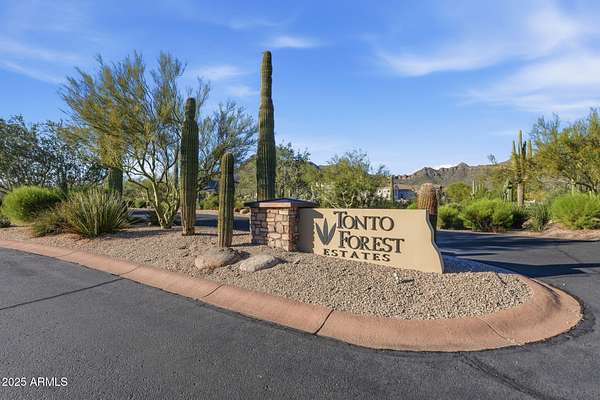 Experience the serenity of Tonto Forest Estates-an elevated community surrounded by wide-open desert beauty. This build-ready homesite offers unobstructed mountain vistas in every direction and unforgettable Arizona sunsets. Located just east of Phoenix, you'll enjoy convenient access to the entire Valley while still feeling worlds away. The property includes water, underground power, and rare dual-access roads for flexible design and easy construction. Nearby single-level homes preserve the views and the peaceful character of the area. Create the custom home you've envisioned on one of the few remaining premium lots in this community.