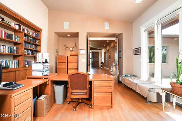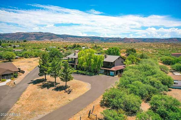 A truly one-of-a-kind estate, anchored by an exceptionally custom resident spanning over 7,000 square feet, originally constructed as a church and masterfully reimagined into a private luxury home. Properties of this scale, history, and architectural distinction are exceedingly rare in the Verde Valley. The residence offers two fully separate living environments, with both upstairs and downstairs designed to function independently: ideal for multigenerational living, extended guests, creative live/work use, or estate level flexibility. Soaring ceilings, dramatic open spaces, and unique architectural details reflect the building's original purpose while delivering a refined and highly customized residential experience. This is not a conventional floor plan. The scale and layout allow for grand gathering areas, private retreats, and the ability to host on a meaningful level, whether intimate family living or large-scale entertaining, the property is designed to maximize both. The structure's character and craftsmanship crease a presence that is both commanding and deeply distinctive. Set on expansive acreage along the highly desirable Page Springs Road corridor, the home is surrounded by usable land that enhances privacy and offers room for future estate improvements, agricultural use, or additional structures. The combination of acreage and an irreplaceable custom residence positions this property in a category of its own. Two parcels, selling together in this transaction include APN 407-03-031E home to the main residence and 1.87 acres and APN 407-03-031A home to a 1,440 sqft manufactured home, currently being utilized as a long-term rental, on an additional 2.99 acres that back up to Arizona State owned land. A custom home could be built on this parcel or there is plenty of room for a barn, arena, greenhouse... you name it, your imagination is the limit. An extraordinary offering for buyers seeking a legacy estate, where architecture, scale, and land converge to create something that simply can't be replicated.