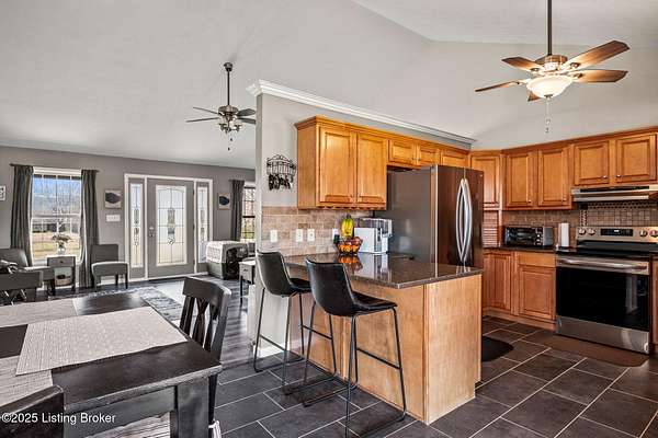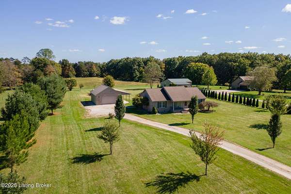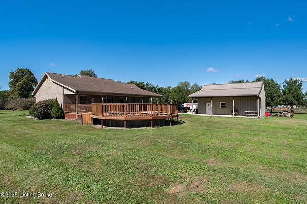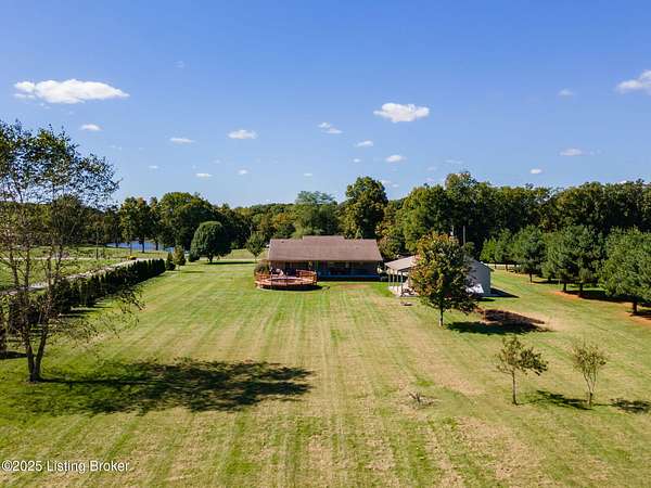 Welcome to 1143 S Moon Road, a brick home that blends classic charm with thoughtful updates, set on 2 scenic acres in Scottsburg, Indiana. From the front porch and front rooms, you'll enjoy serene lake views that make every space feel connected to the outdoors! Inside, the home features three bedrooms, two full baths, and an inviting layout accented by neutral colors, attractive updated flooring, and warm lighting. The primary suite boasts a fully renovated bathroom completed in 2023, while the living room is centered around an electric fireplace, perfect for cozy evenings. The kitchen has been tastefully refreshed with new tile flooring along with a new stove and dishwasher. A whole-house water filtration system provides fresh, clean water throughout. The water heater, replaced only six months ago, offers peace of mind with an added expansion tank. Step outside and unwind by the above-ground pool with its wrap-around deck, surrounded by beautiful landscaping. A 27x32 detached garage with dedicated HVAC, electric, shelving, and a covered lean-to makes an excellent workshop, storage solution, or hobby space. This property combines the tranquility of country living with modern convenienceready to welcome its next owner home.