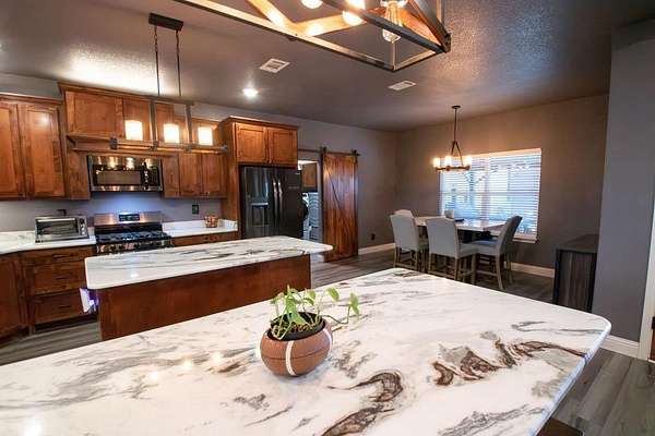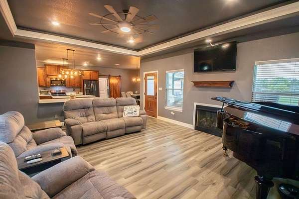 Escape to your own private five-acre homestead, where modern luxury meets the quiet charm of country living. This practically new custom home offers the perfect balance of sophisticated design and functional hobby-farm features, all while benefiting from the advantage of lower taxes. Inside, the open-concept layout is tied together by durable luxury vinyl plank flooring and stylish wood barn doors, creating a warm, contemporary aesthetic. The thoughtful split-bedroom arrangement ensures privacy, while the professionally converted garage provides a massive game room perfect for Friday night movies or a home gym.
