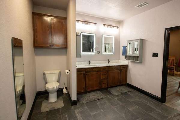 The primary suite serves as a true sanctuary, featuring a spacious bedroom and an ensuite bath that rivals a high-end spa. You can unwind in the large separate soaking tub or the oversized walk-in shower, complemented by dual vanities equipped with built-in mirror defoggers for a seamless morning routine.