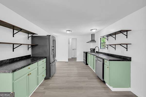Fully renovated and move-in ready, this home sits on approximately 2 private acres and offers an affordable opportunity to own just outside of Athens. The home features new paint, flooring, lighting, and finishes throughout, creating a clean, modern feel without the high price tag. The kitchen stands out with dark countertops, olive green cabinetry with gold hardware, and stainless steel appliances, offering both style and functionality for everyday living. The bathroom has been updated with a tile shower, while blonde-toned flooring throughout helps keep the space feeling bright and open. Outside, you'll find newly built decks and plenty of room to enjoy the surrounding land-perfect for relaxing or simply having space from neighbors. Conveniently located just a short drive to Athens, this property offers a rare combination of modern updates, privacy, acreage, and affordability-making it a strong option for buyers looking for value without sacrificing quality.