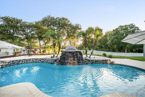 An Entertainer's Paradise on Acres! Welcome to a truly exceptional estate designed for grand entertaining and effortless everyday living. Tucked inside one of Lithia's most distinguished gated communities, this custom-designed, fully renovated home with 5 bedrooms, 5 full baths, 2 half baths, a home office with pool views, bonus room, bonus loft, a 5-car garage, and five breathtaking acres of privacy and natural beauty. With protected land stretching beyond your backyard and no rear neighbors, this is where luxury meets serenity.