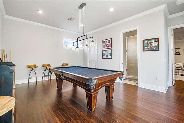 Upstairs, flexible living space expands the possibilities with a bonus loft and an oversized bonus room with a private balcony. Whether used as a media room, game room, playroom, fitness studio, or optional sixth bedroom, this level adapts beautifully to your lifestyle needs.